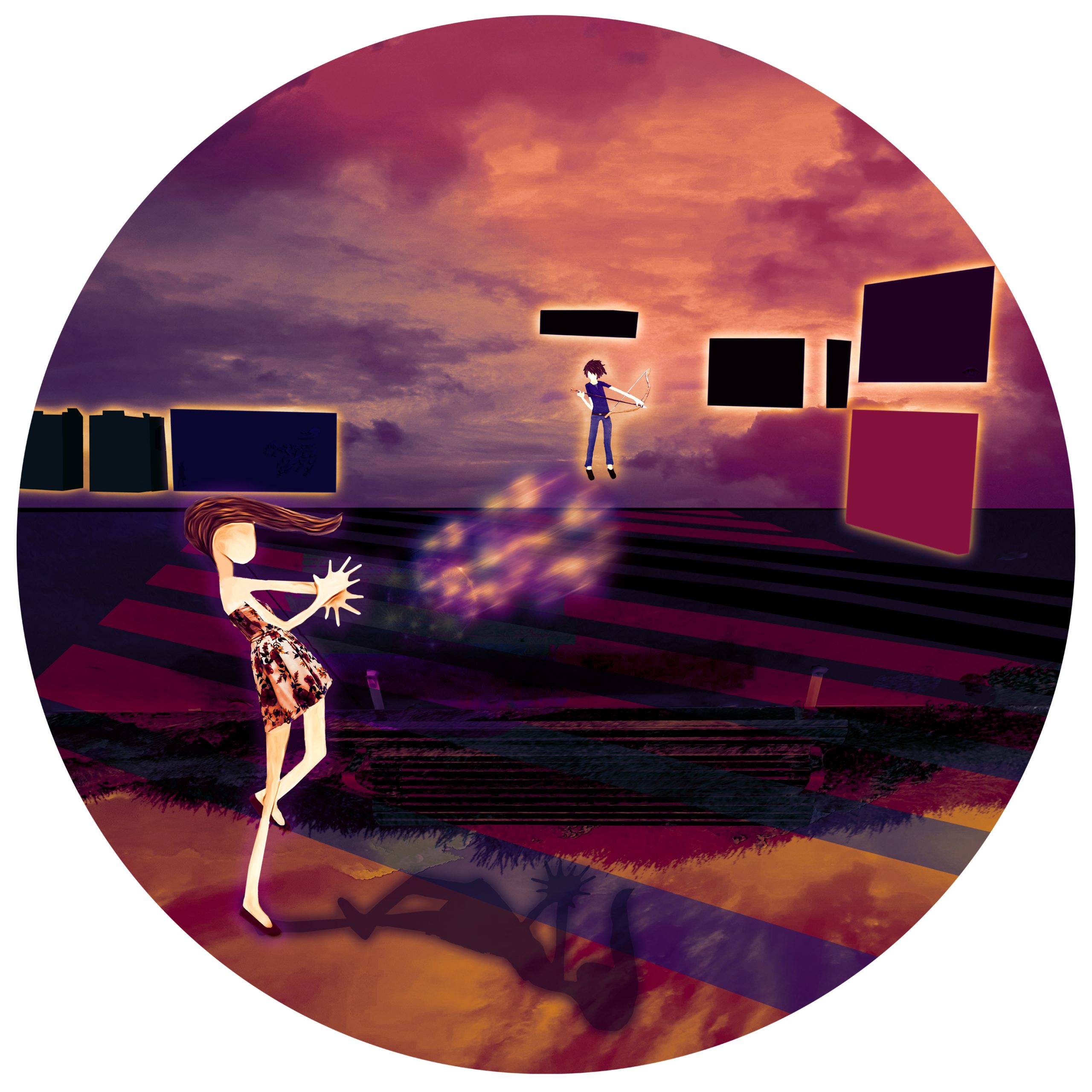 This original work combines drawings, photographs, and digital creations to form a unique one-off digital print on acrylic mounting.