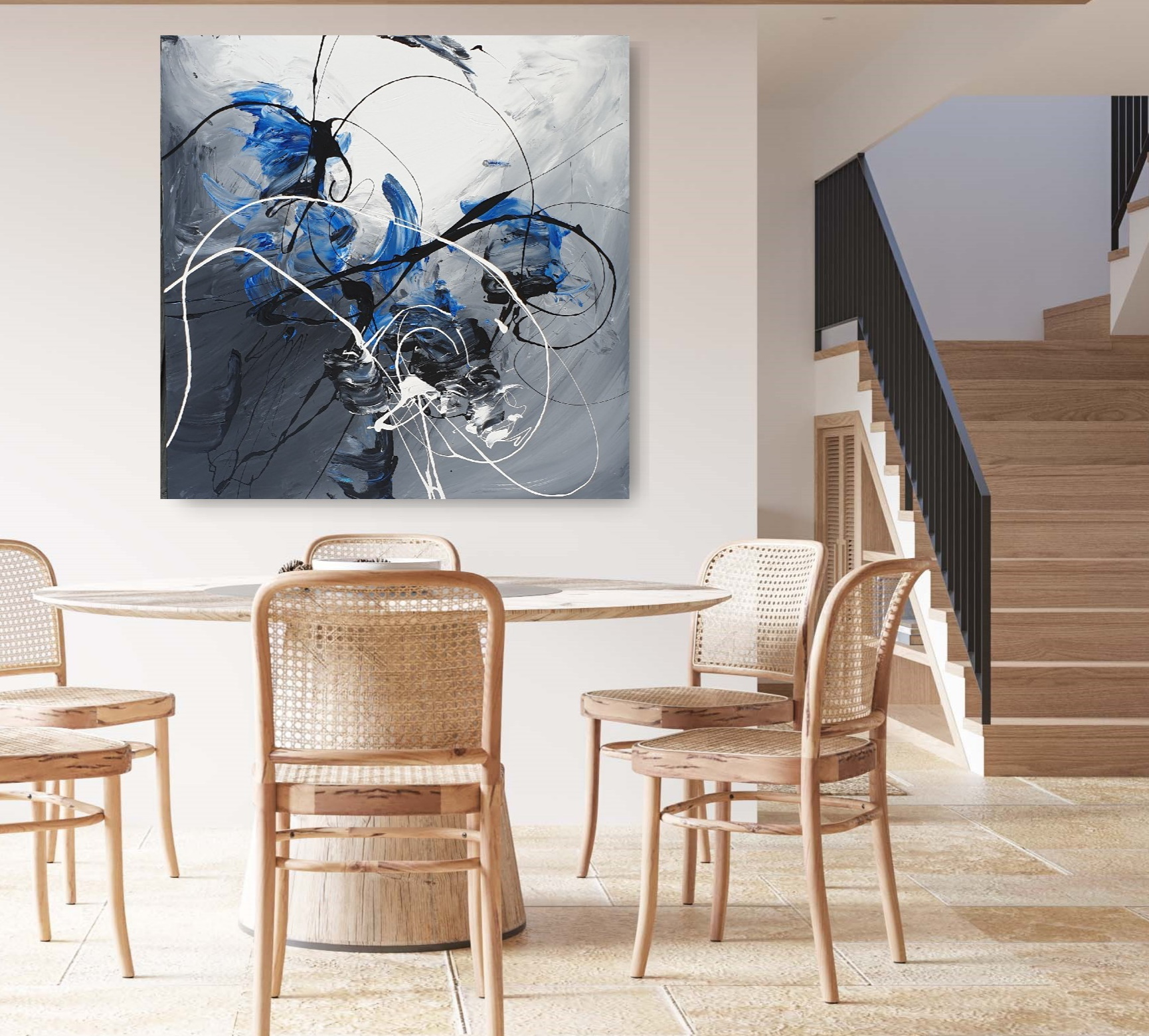 I view painting as sheer passion and feeling. Through my process I don’t seek to depict a set idea or subject, but instead I let scenes and dynamic movement emerge organically.