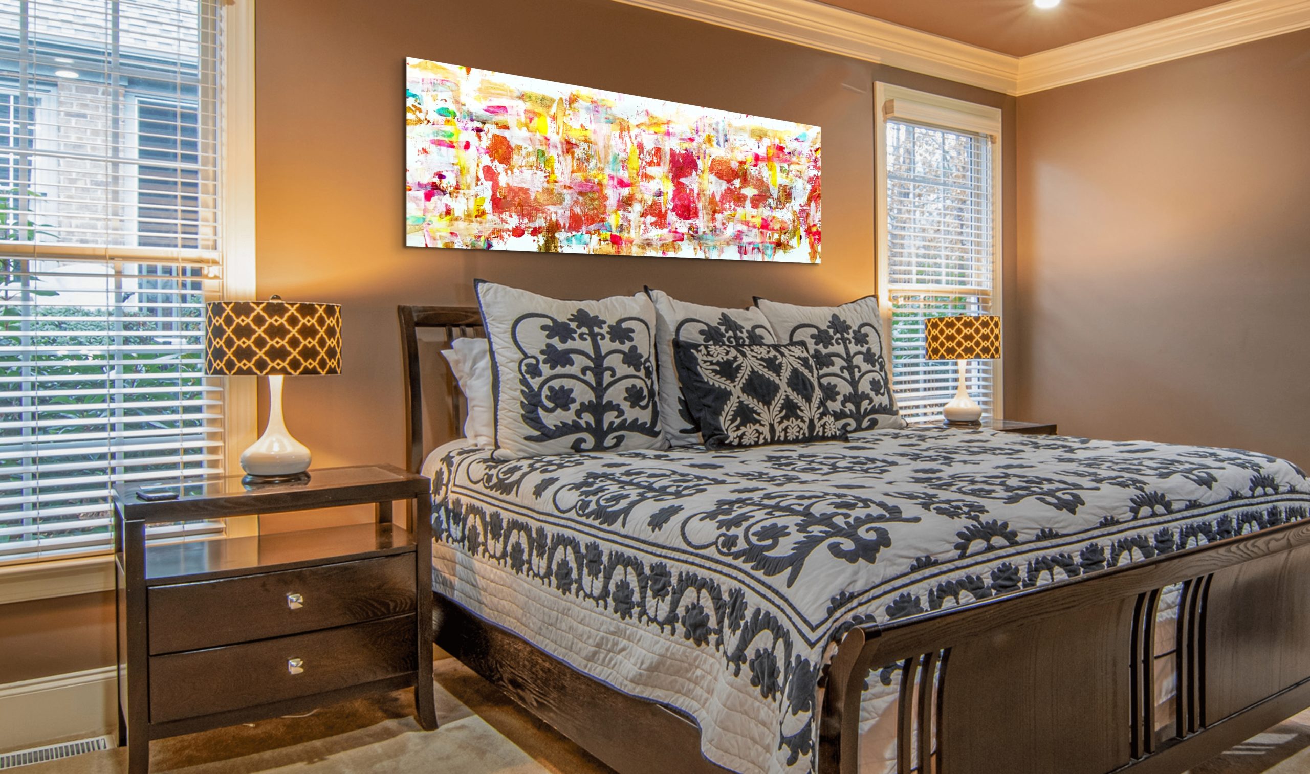 This work is painted on professional-grade canvas and has been sealed with varnish. The canvas is 190 cm in width by 57 cm in height, and this painting is Synthetic Polymer on a 12 oz canvas on a professional stretcher. The floating frame is not included but it can be added as an optional extra.