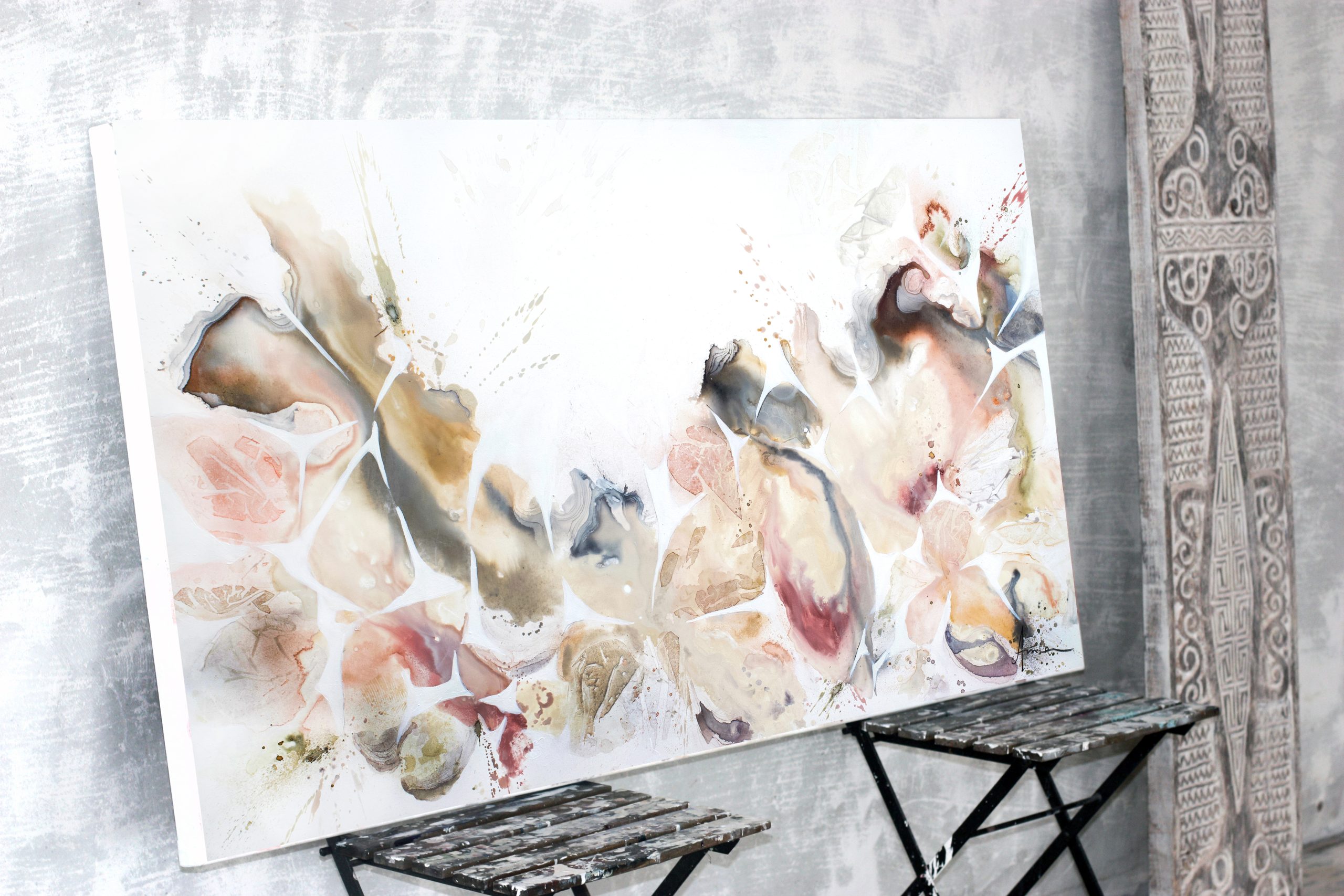 Though all my pieces are purely abstract, upon viewing we intuitively recognise a visual language that mimics the currents of the ocean, natural formations of the earth, a flower in new bloom or the patterns of precious stone. They activate the senses, allowing for immersive visual experiences that transport you outdoors, straight into nature’s arms.