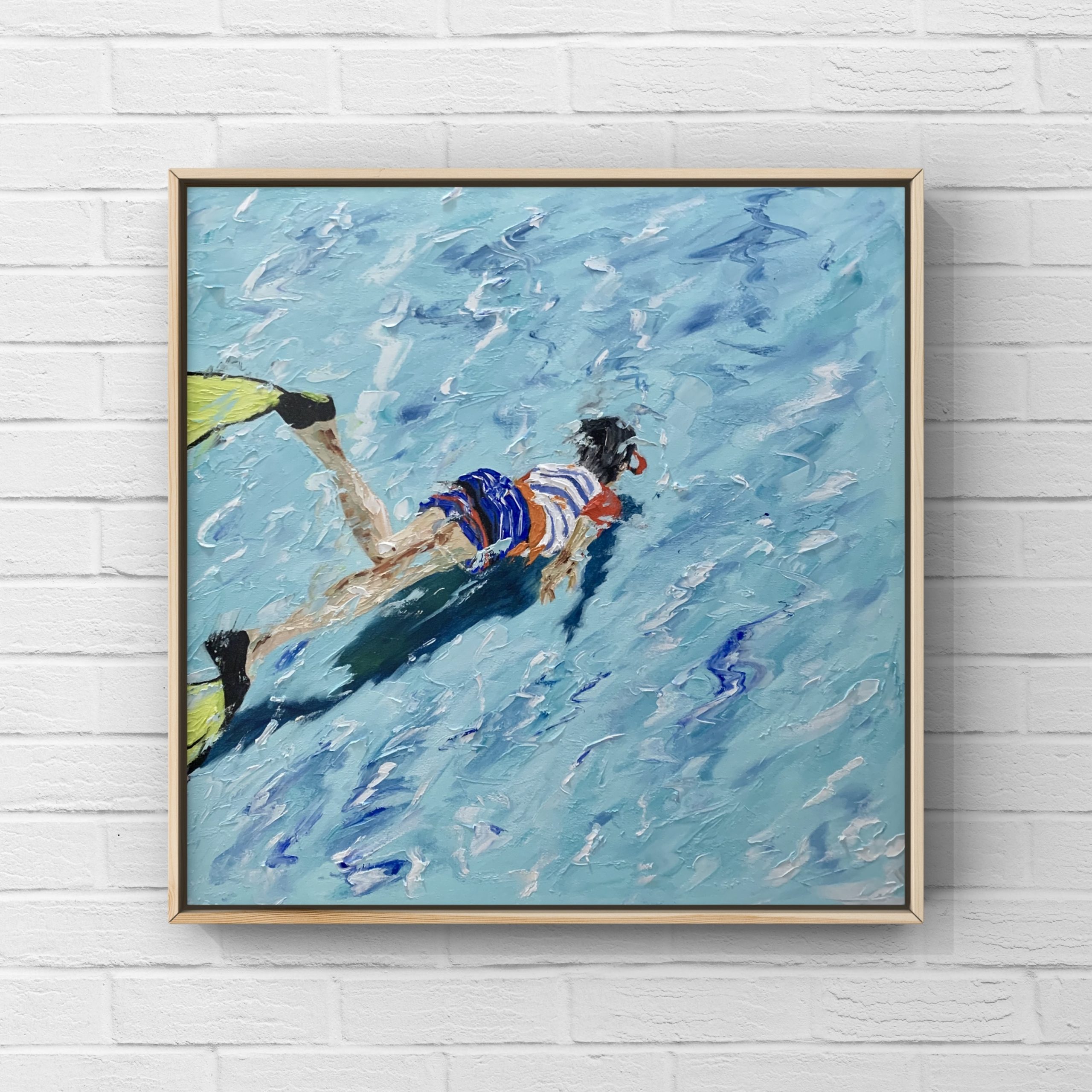Original Artwork by Anjana Rai. This artwork is third painting in my underwater series. Painting with brush and palette knife using impasto technique on stretched canvas, framed in solid oak frame, ready to hang.