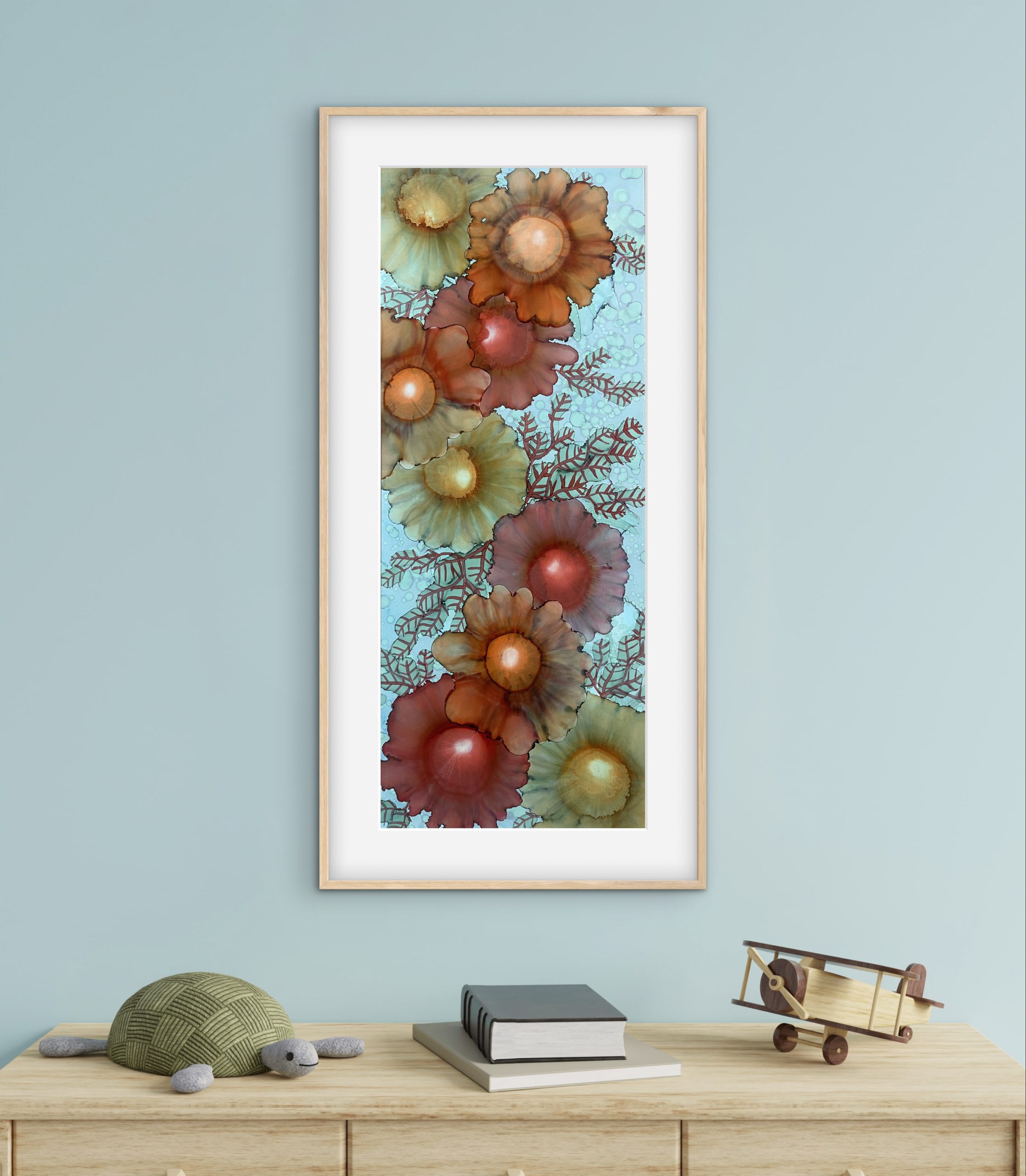 Original 26 x 65 cm Alcohol ink on yupo paper sealed with high grade varnish and UV spray.