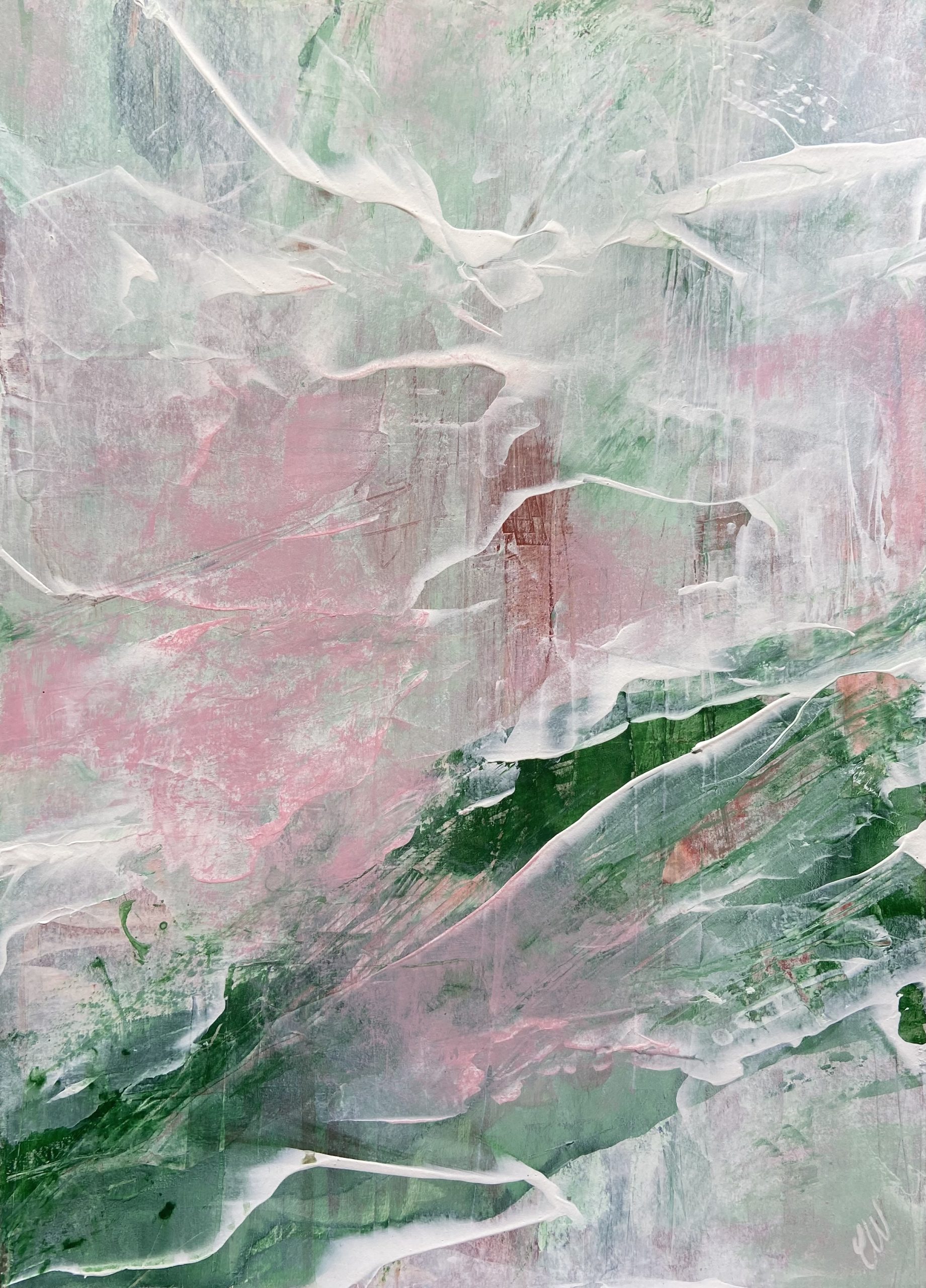 Unfolding by Carrie Welsh is a beautiful abstract painting. Acrylic on paper. 29.7 x 42 cm (A3 size) Frames not included. Requires framing.