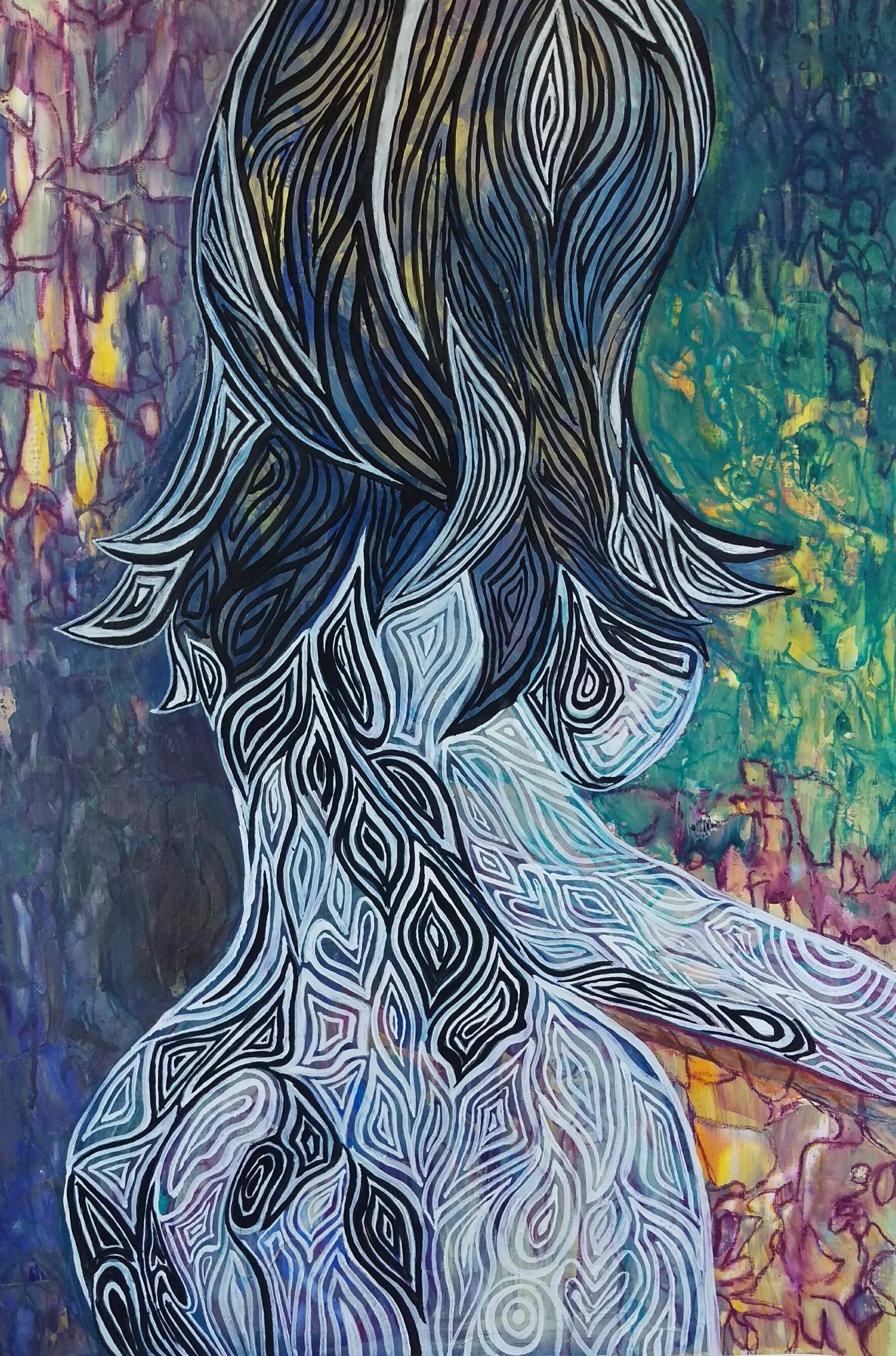 These artworks are a celebration of being the same but different. We all are humans but each and every one of us are unique. It is a celebration of individuality. The colourful backgrounds were heralding our “True Colours” whilst the black and white patterned/striped bodies were inspired by Zebras! Yes Zebras’ I was fascinated to find out that, even though every zebra has black and white stripes no two pattern markings on their hide are the same, they are like fingerprints. This Uniquely You series allowed me to ponder my own self perception and learn to accept and embrace my own individuality. It allowed me to be more comfortabe in my ‘own skin”!