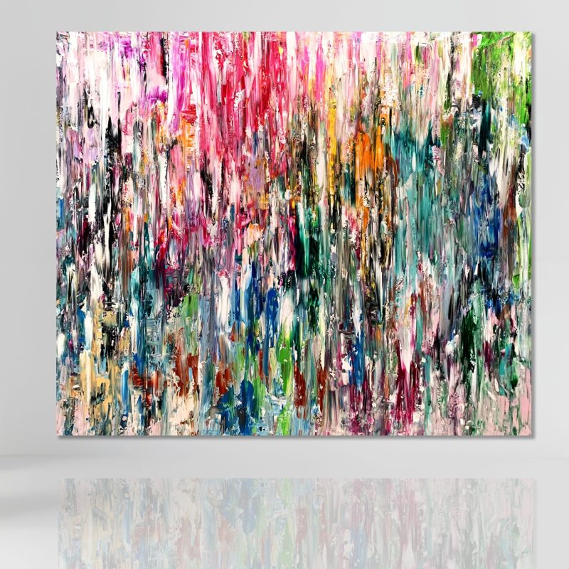 It is acrylic on stretched canvas and comes framed in natural timber.