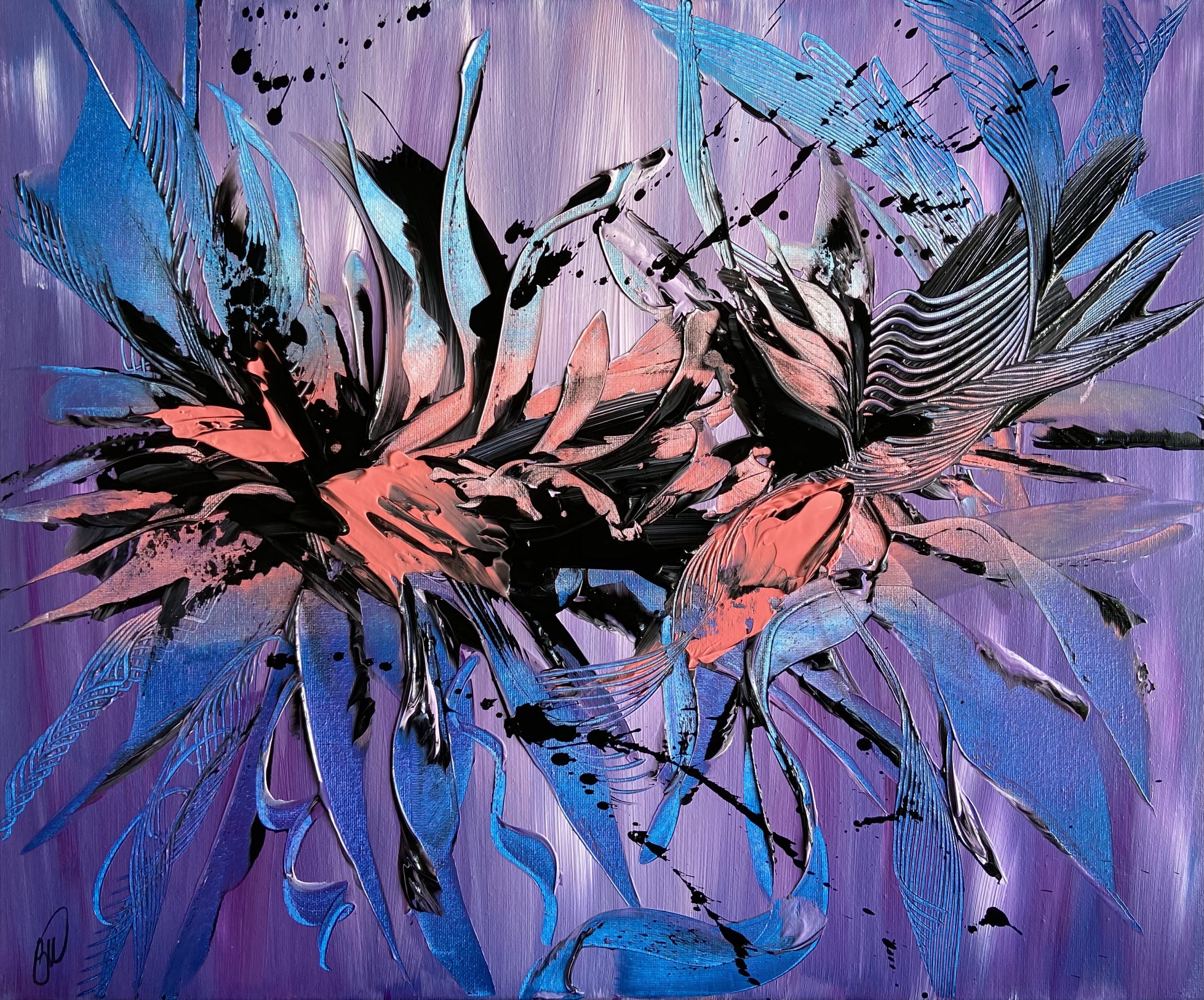 Untamed by Carrie Welsh is a bold abstract with a beautiful colour combination. This piece has lots of life and will lift any room. 50 x 60 cm. Acrylic on canvas, ready to hang.