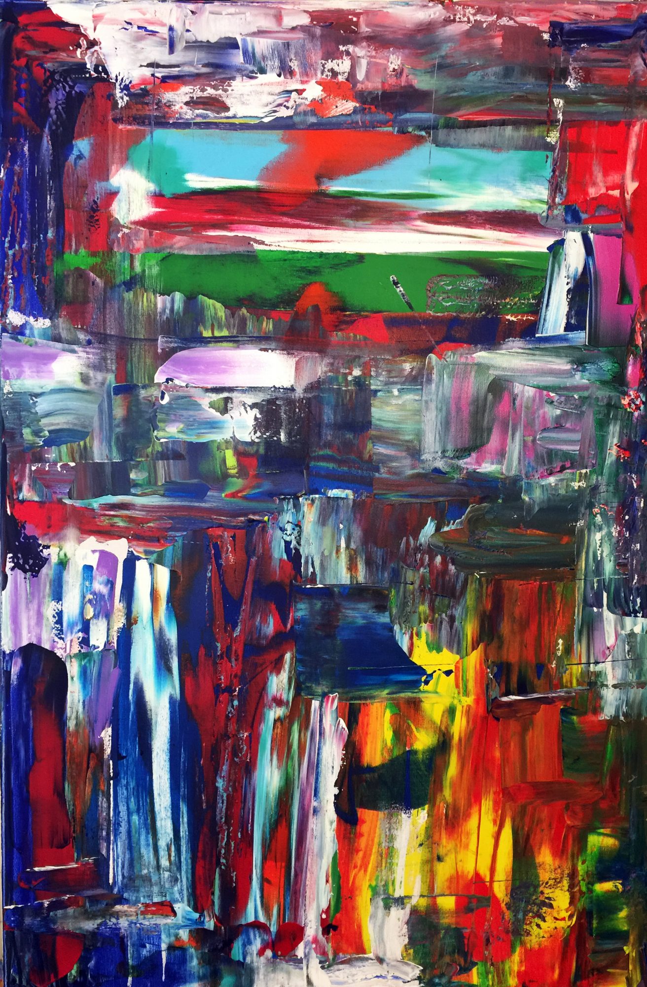 This work was inspired by a emotion only, in such a way that I felt completely peaceful yet a small yearning remained . It has an curious feel to it yet it requires individual interruption. I like using acrylics as the colors blend so well together. The style is abstract expressionism.