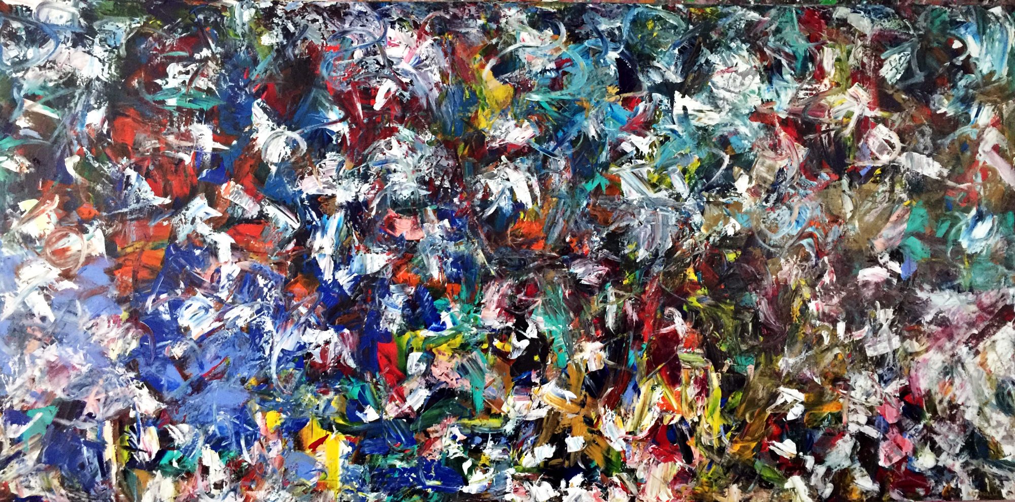 This work was inspired pure emotion, the emotion of feeling a pure sense of satisfaction. It was a great feeling, while the idea behind the painting, was merely the act of painting – in the true abstract expressionism style.