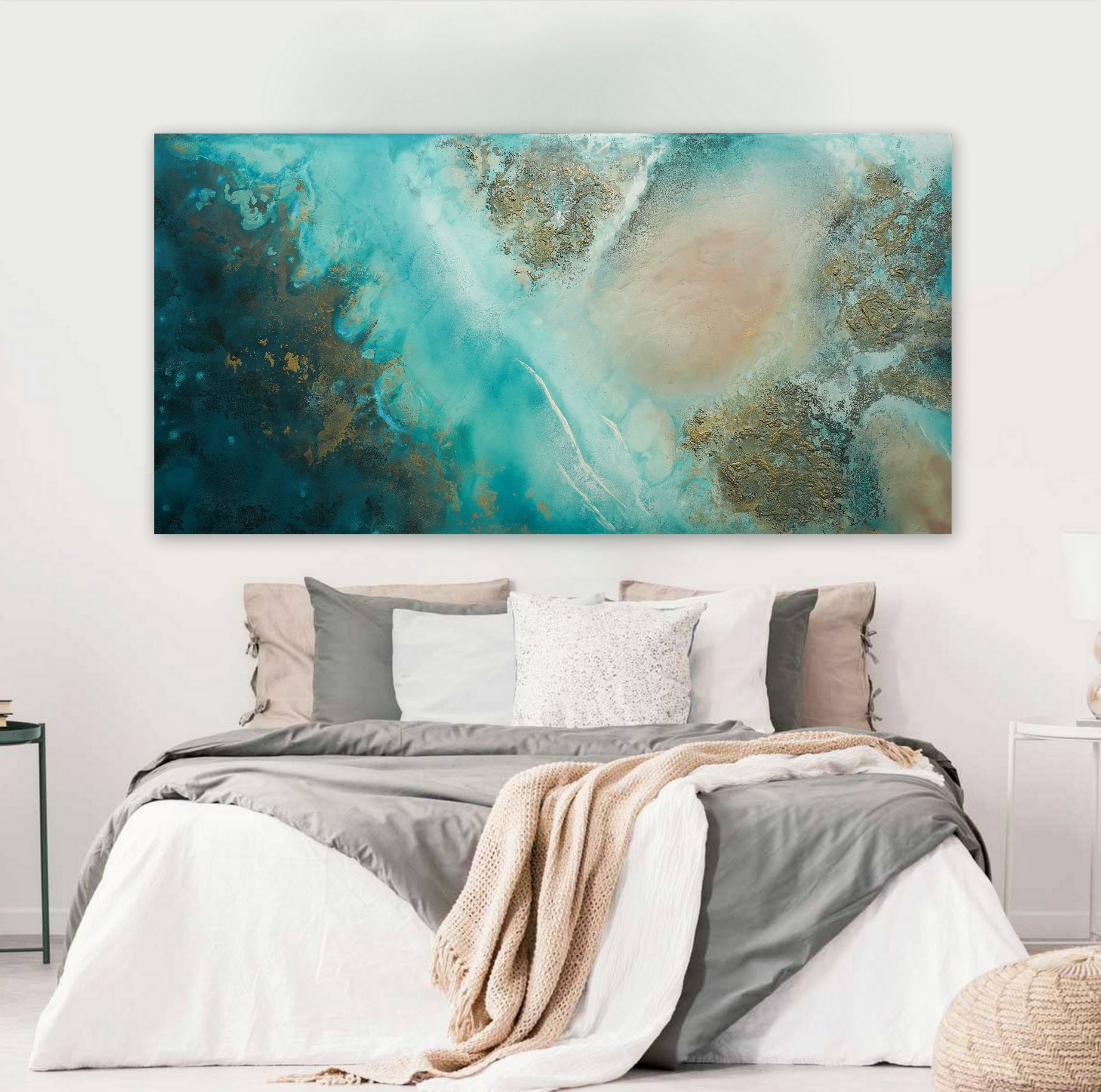 This painting is an abstract impression of the untouched waters of the Great Barrier Reef.