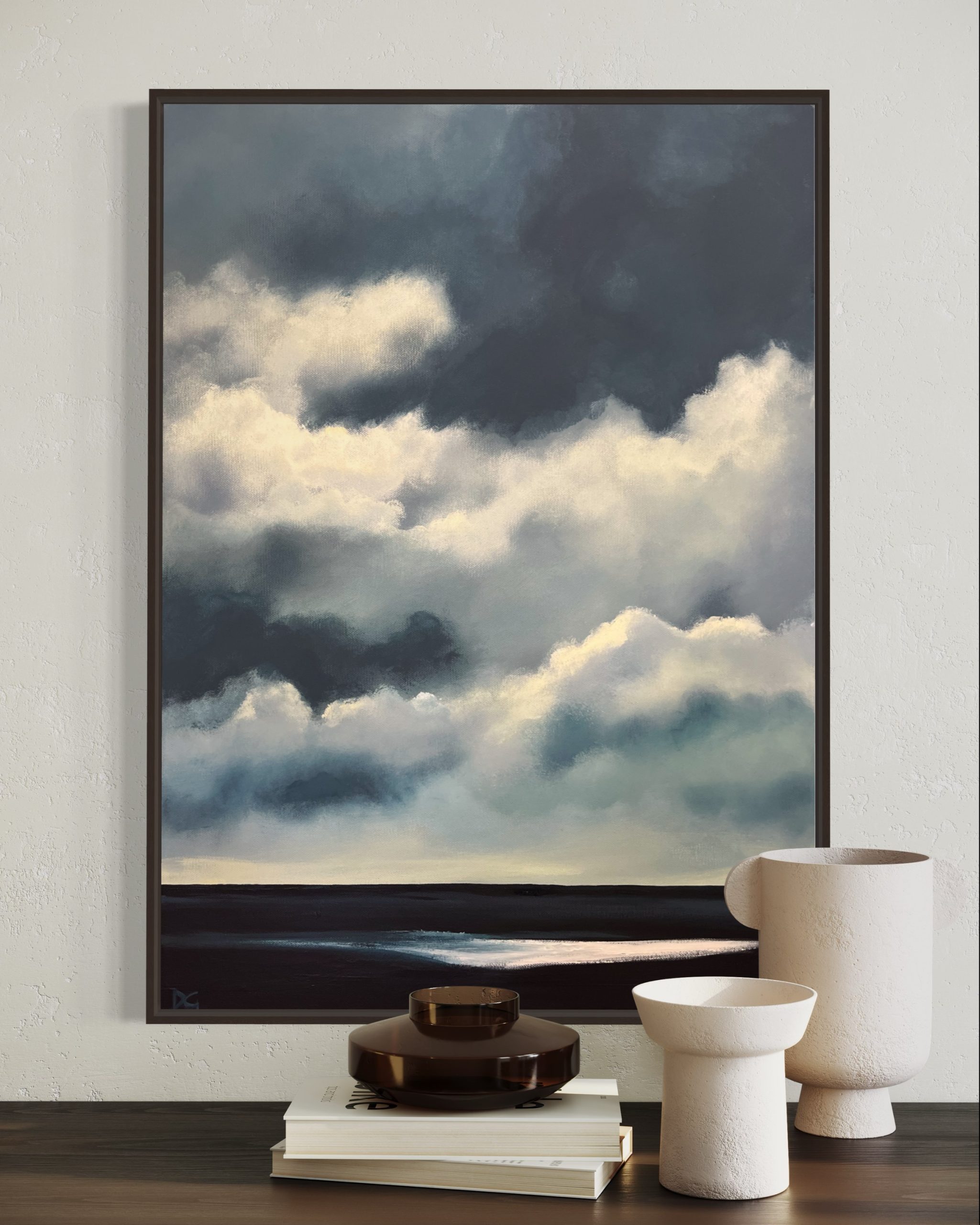 My intent in this artwork was to create cloud compositions that were both luminous and soft against a dark brooding sky.