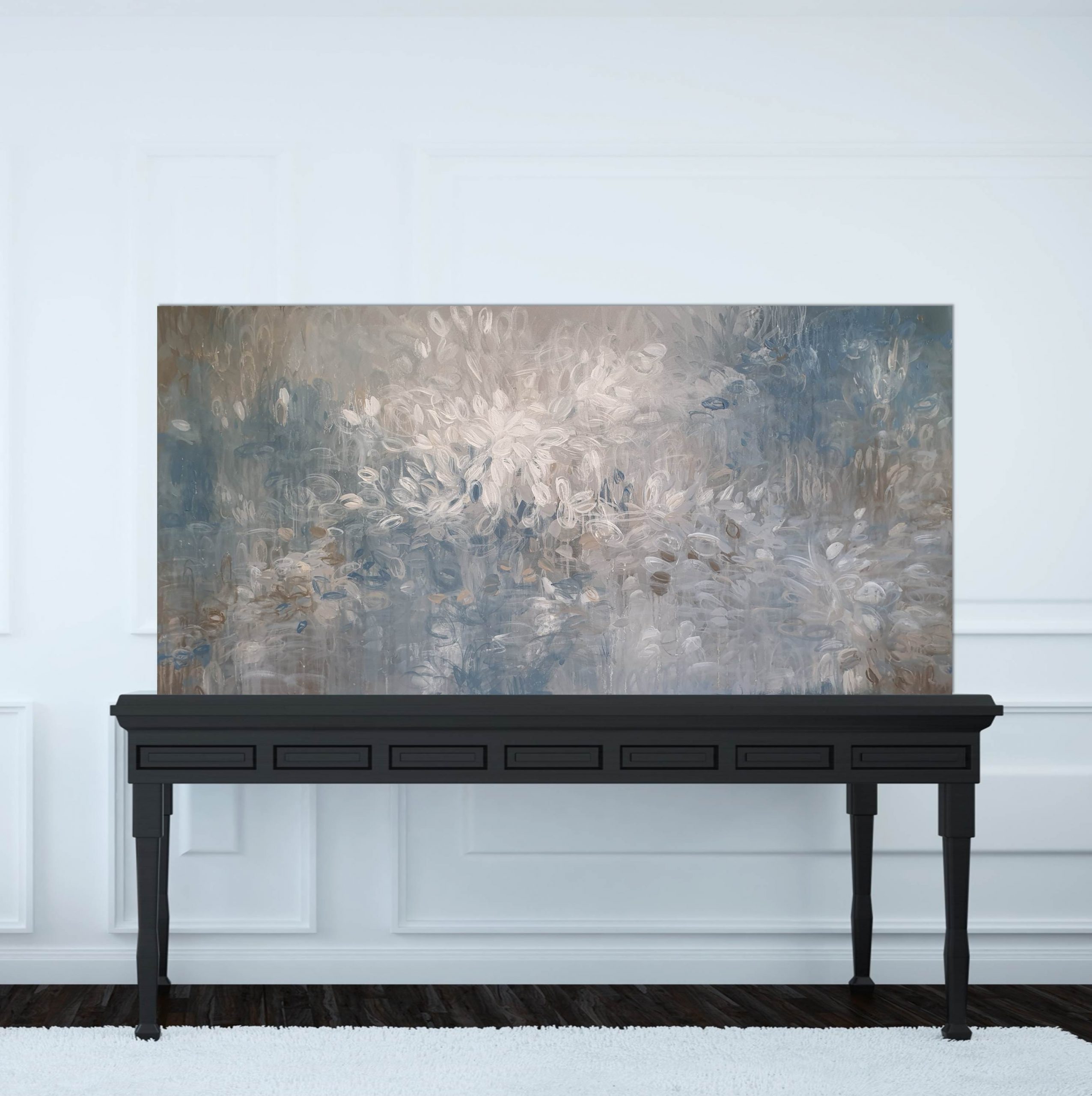 This painting is finished with a modern soft satin protective finish and matte white edges.