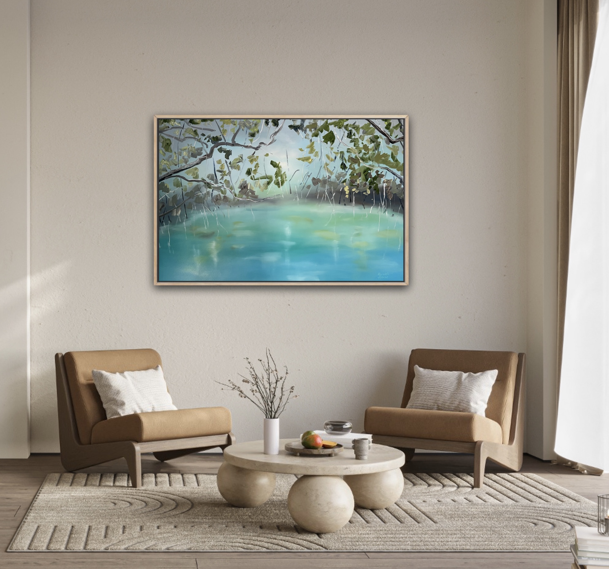 Inspired by the Upper Daintree estuaries, near Cairns, where rainforest meets the sea. Mangroves climb out of the crystal clear waters.