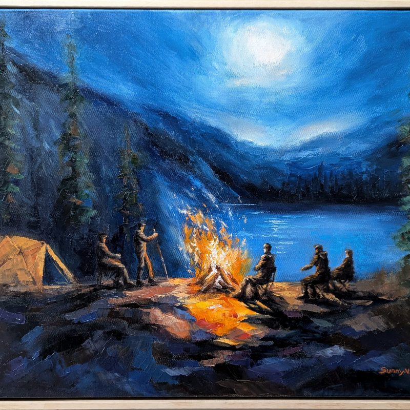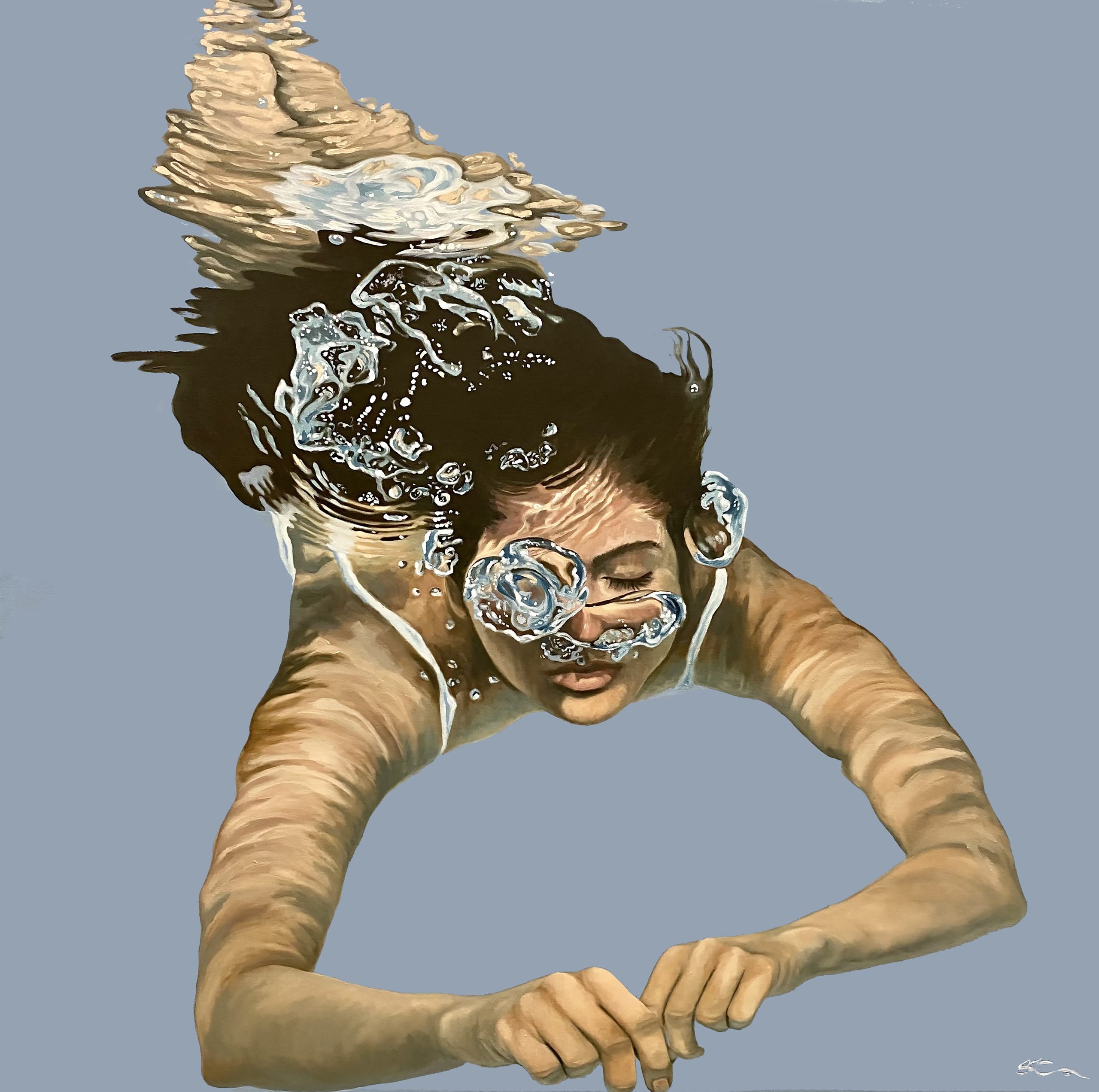 Uprising by Amanda Cameron – One of my ‘Summer Series’ of paintings and is an investigation into the interaction and connection between perspective, realism and colour. Amanda’s work is focused on the quest for finding refuge, quietness and escapism. Some [paintings] focus on the lone swimmer, the few minutes of introspection when submerged in the warm quiet of water, and others investigate the interaction of people within various aspects of the landscape. I haven’t settled on any particular style, and constantly struggle with the juxtaposition between hyper-realism and having a painterly quality to my art and this conflict in my paintings is what I am always trying to balance. This piece is painted in professional quality oil paints on a museum quality canvas, and finished with edges painted and a gloss varnish for protection. It comes with hanging wire and a certificate of authenticity.
