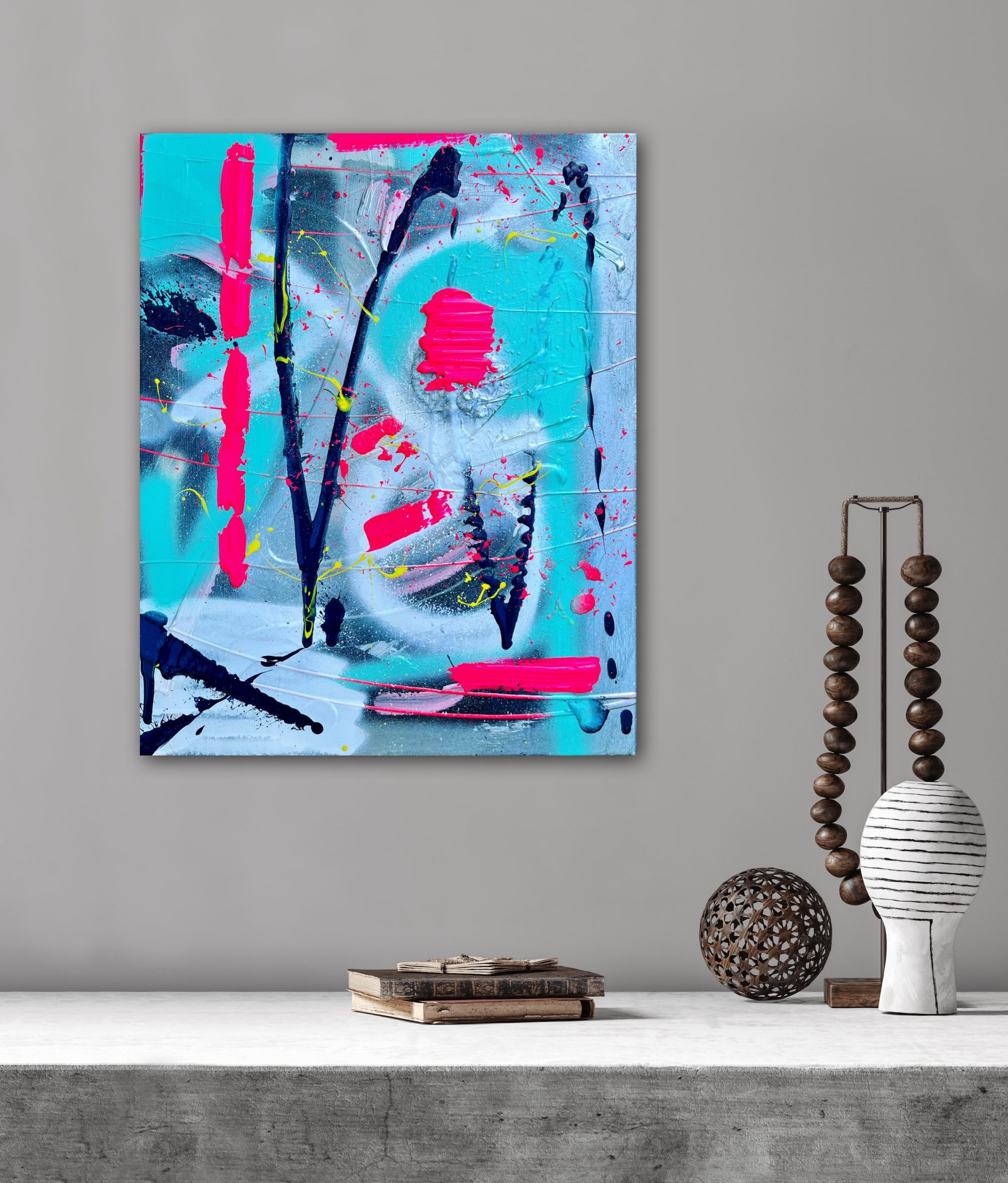 Alicia Gilchrist is an Australian artist whose paintings have been featured in solo and group exhibitions. Her abstractions are designed to evoke emotion and capture attention through the use of bright, vibrant colours, and an energetic and playful style of painting.
