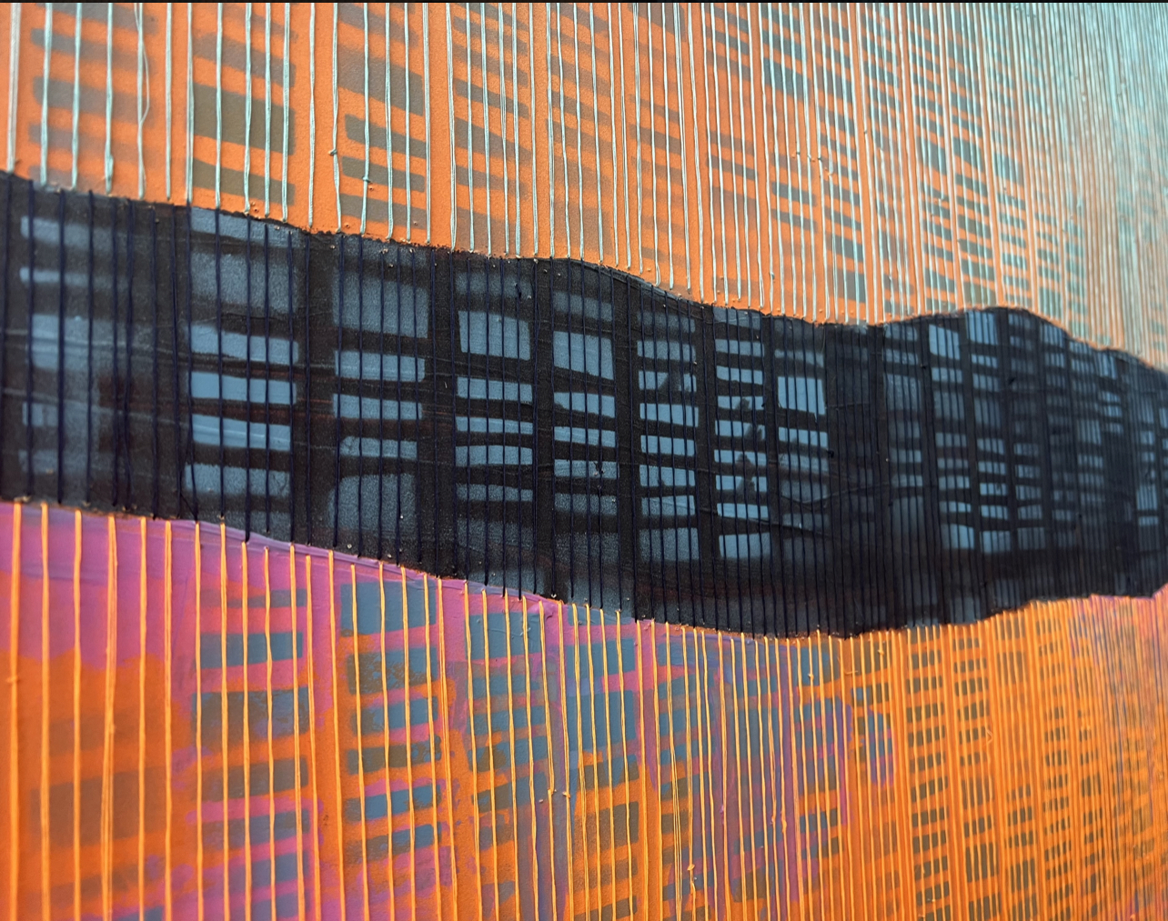 Layer 3: Hand embroidery is used to connect the natural and urban layers building connections through patterns that highlights the flaws and features of these environments.