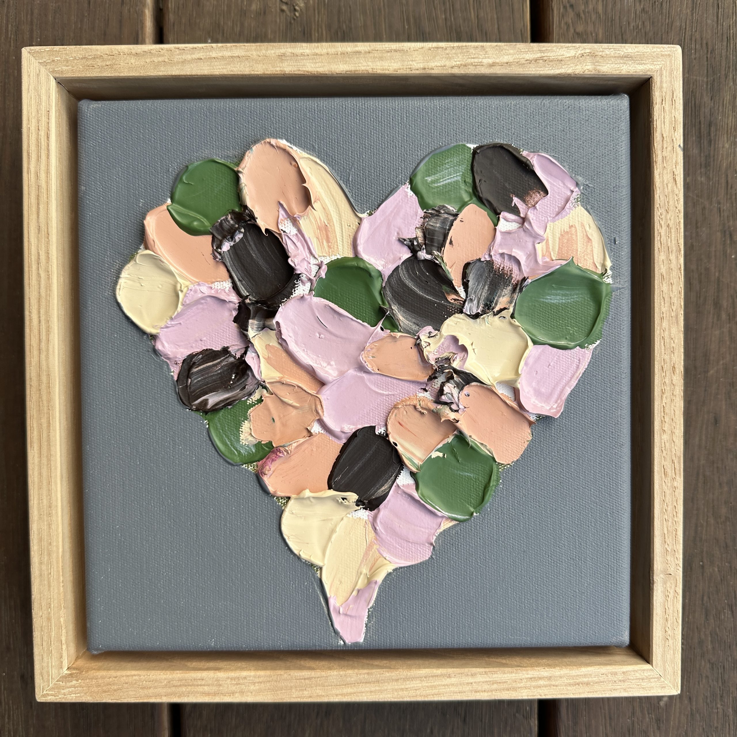 Gorgeous little love heart, thick textured petals inside and lots of texture! Beautifully framed in sustainable American Ash timber floating frame