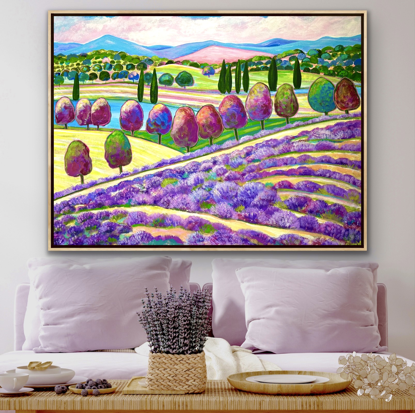 The inspiration for my one off, modern day landscape artwork is a beautiful lavender farm, in the Scenic Rim, just outside of Brisbane. I have painted commissions for art collectors who were married here, for wedding presents and for anniversary gifts and they always bring so much pleasure!