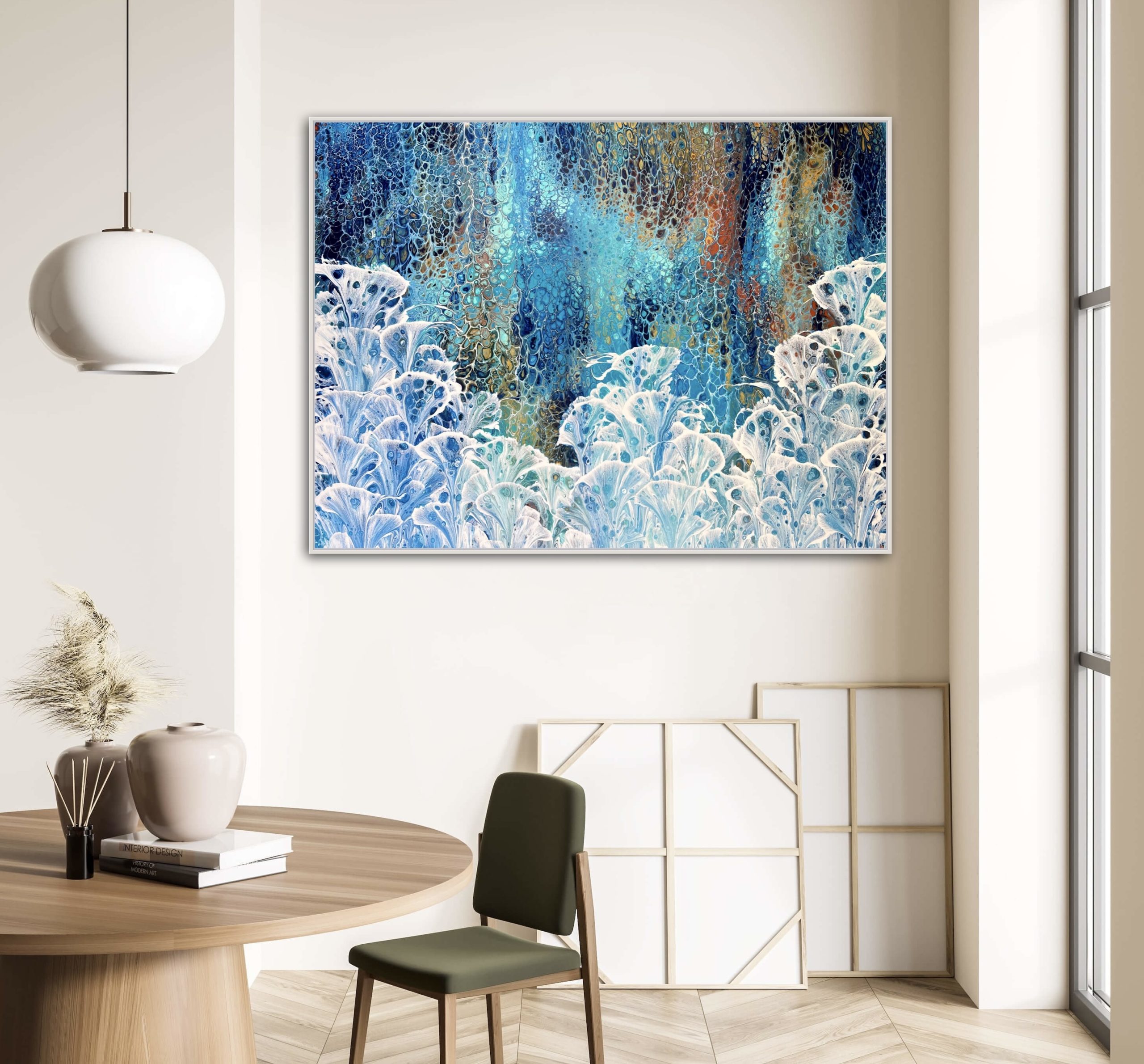 ‘In situ’ photos have been included to help with visualisation of the artwork in your home. In situ photos provided were created using the ArtStage app and may not be perfectly to scale. This being said, every effort has been made to represent the size of the art accurately but please read the dimensions of the artwork to ensure it fits your space perfectly. Where provided, photos of framed art are for illustrative purposes only.
