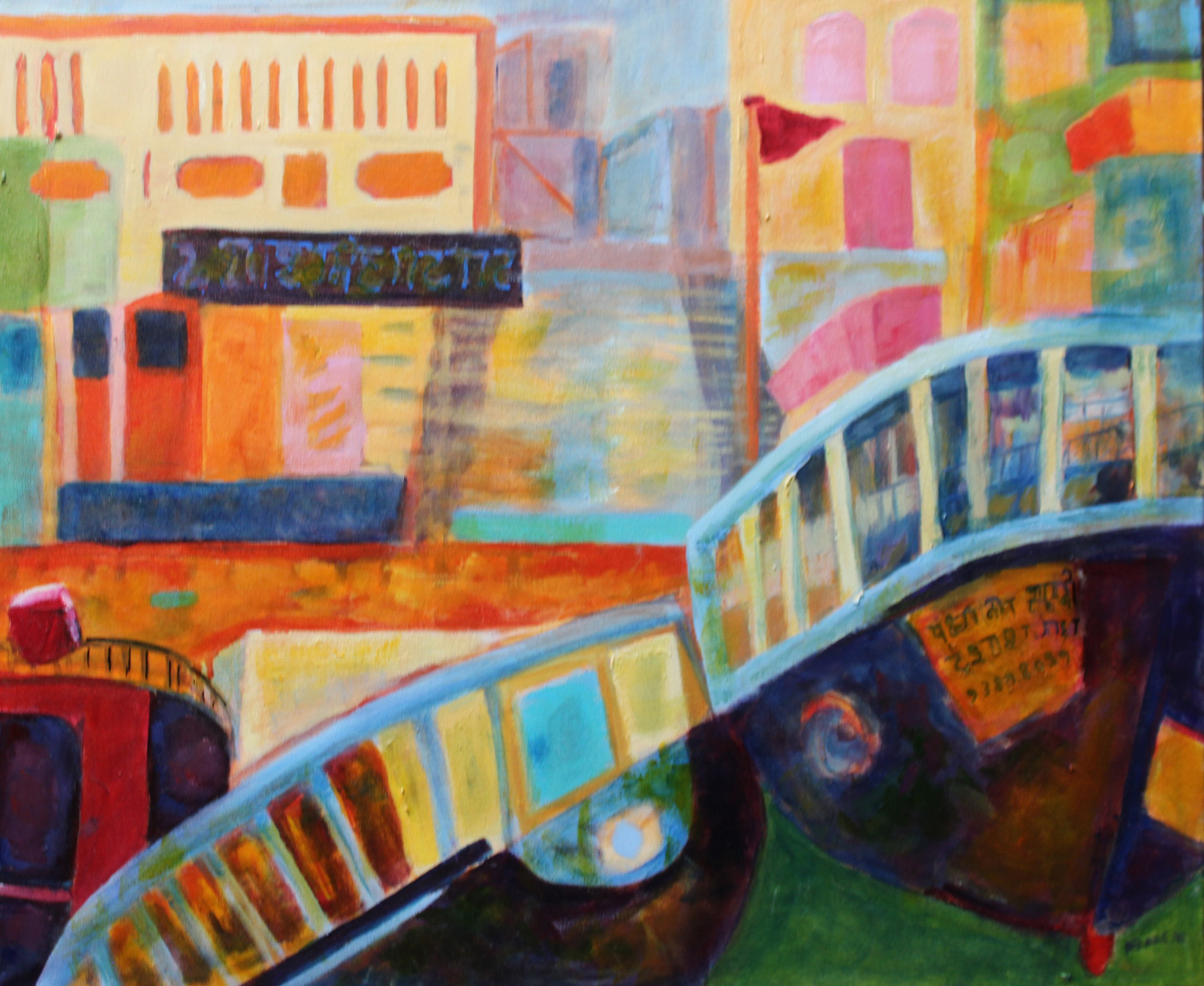 This Varanasi abstract landscape painting was inspired by a visit to India in December/January.