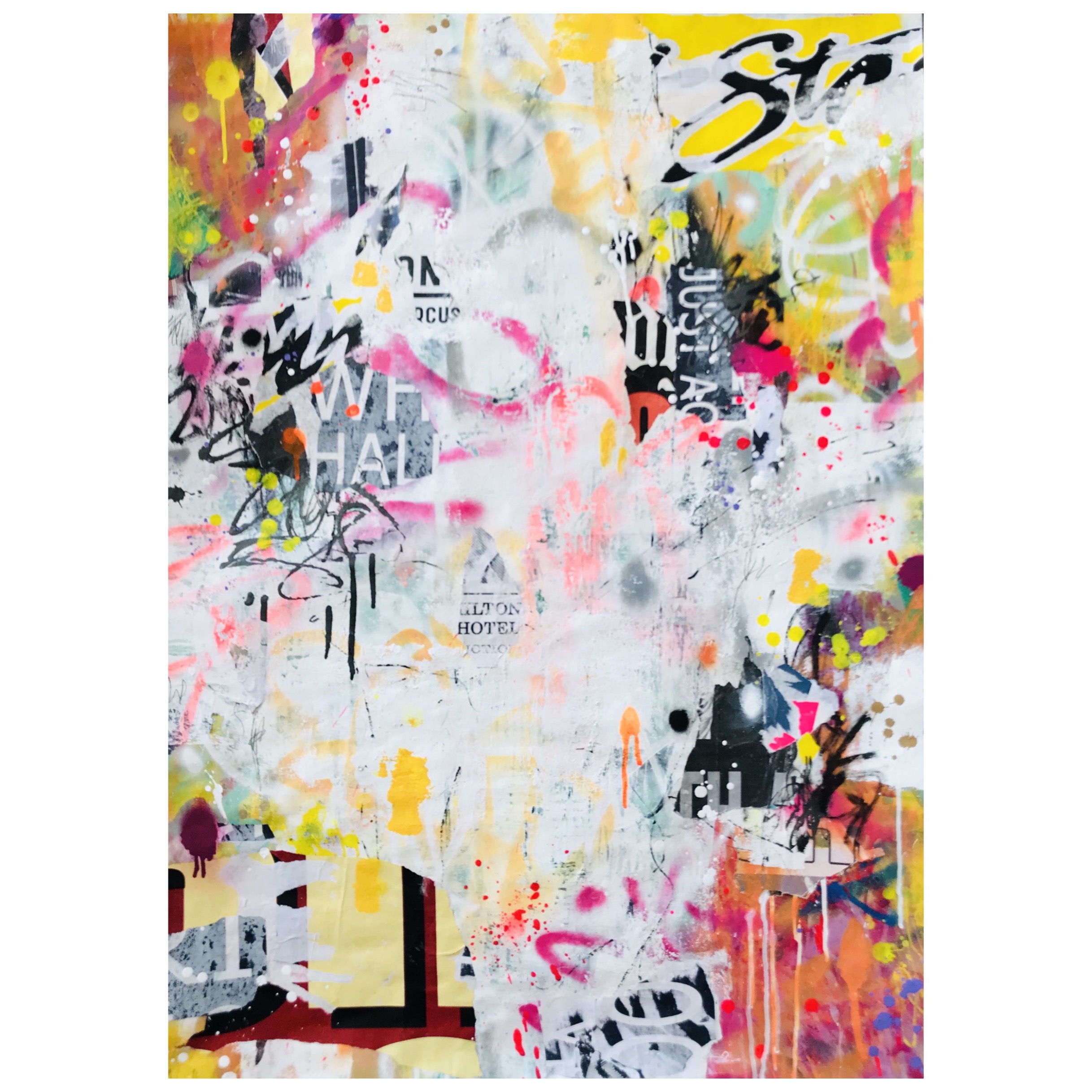 This artwork has a very textured finish created by built up layers, a visual effect mimicking the look you would see in the street where this effect is created over time on Graffiti Walls & Advertising Spaces. These imperfections are part of the overall look and feel of the finished work.