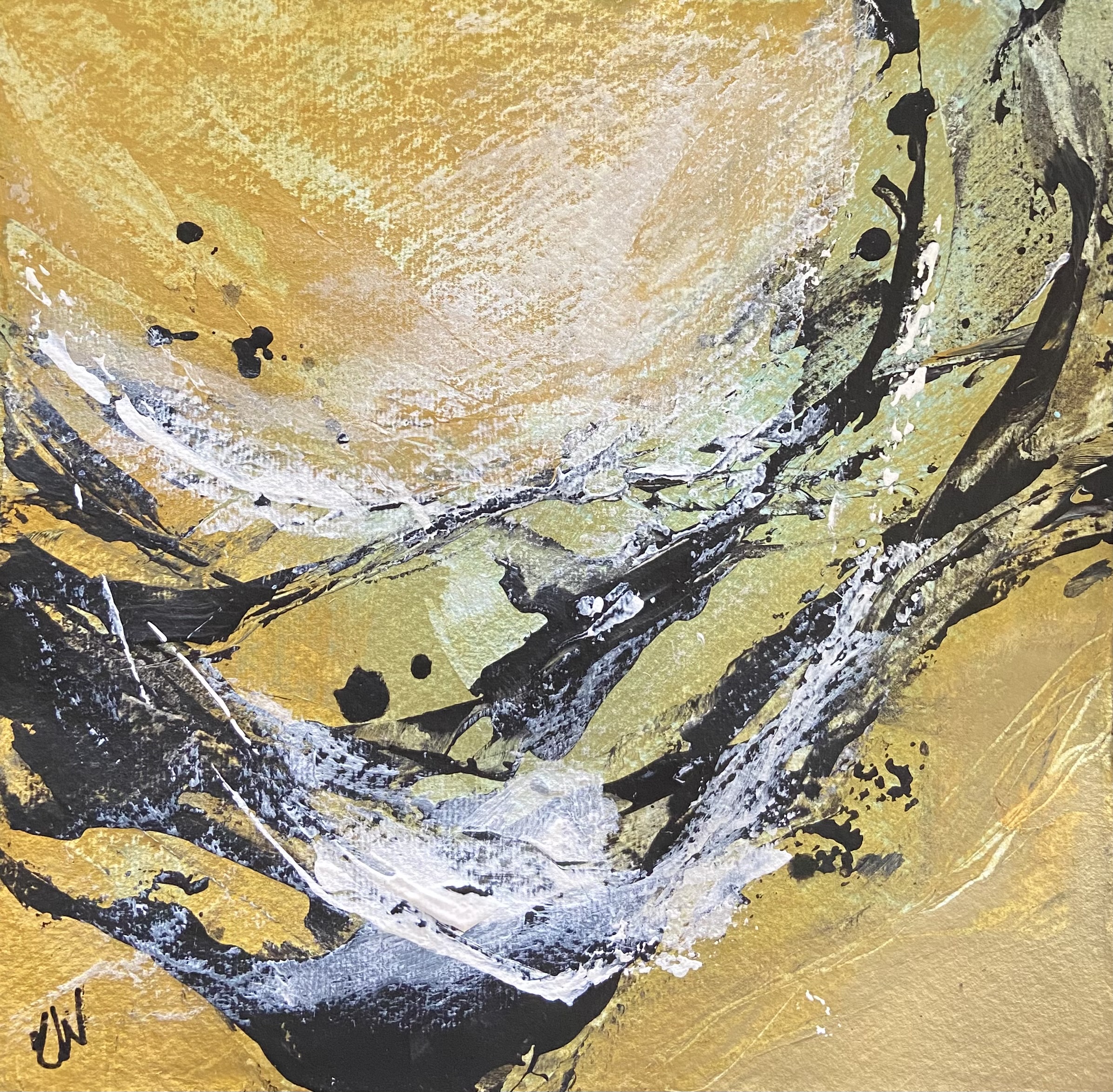 A beautiful abstract painting full of captured movement. Frame not included. 20 x 20 cm. Acrylic on paper. Requires framing.