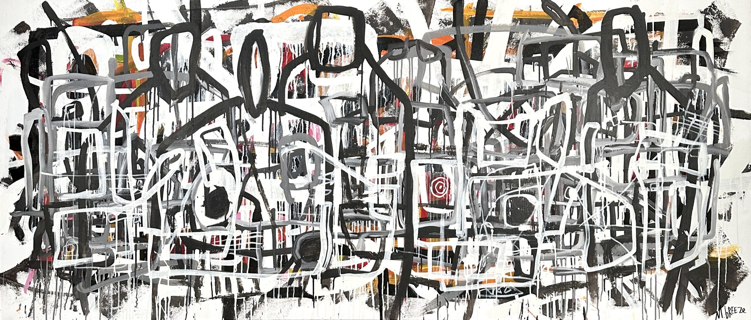 Original artwork using acrylic paints applied with trowel, hands and brush on to stretched canvas