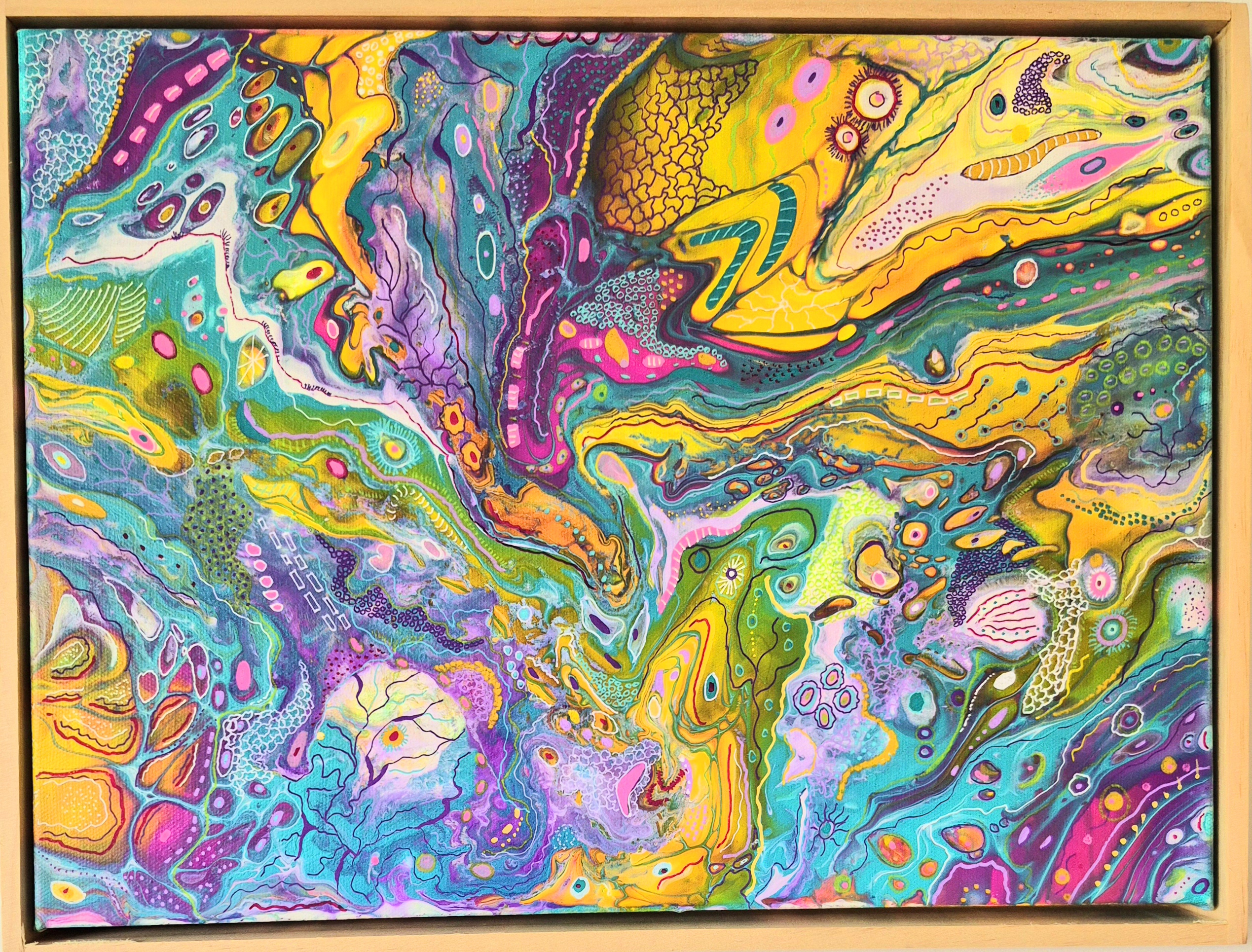 Base Acrylic paint flotrol and silicone, design over acrylic paint and Posca Art pens