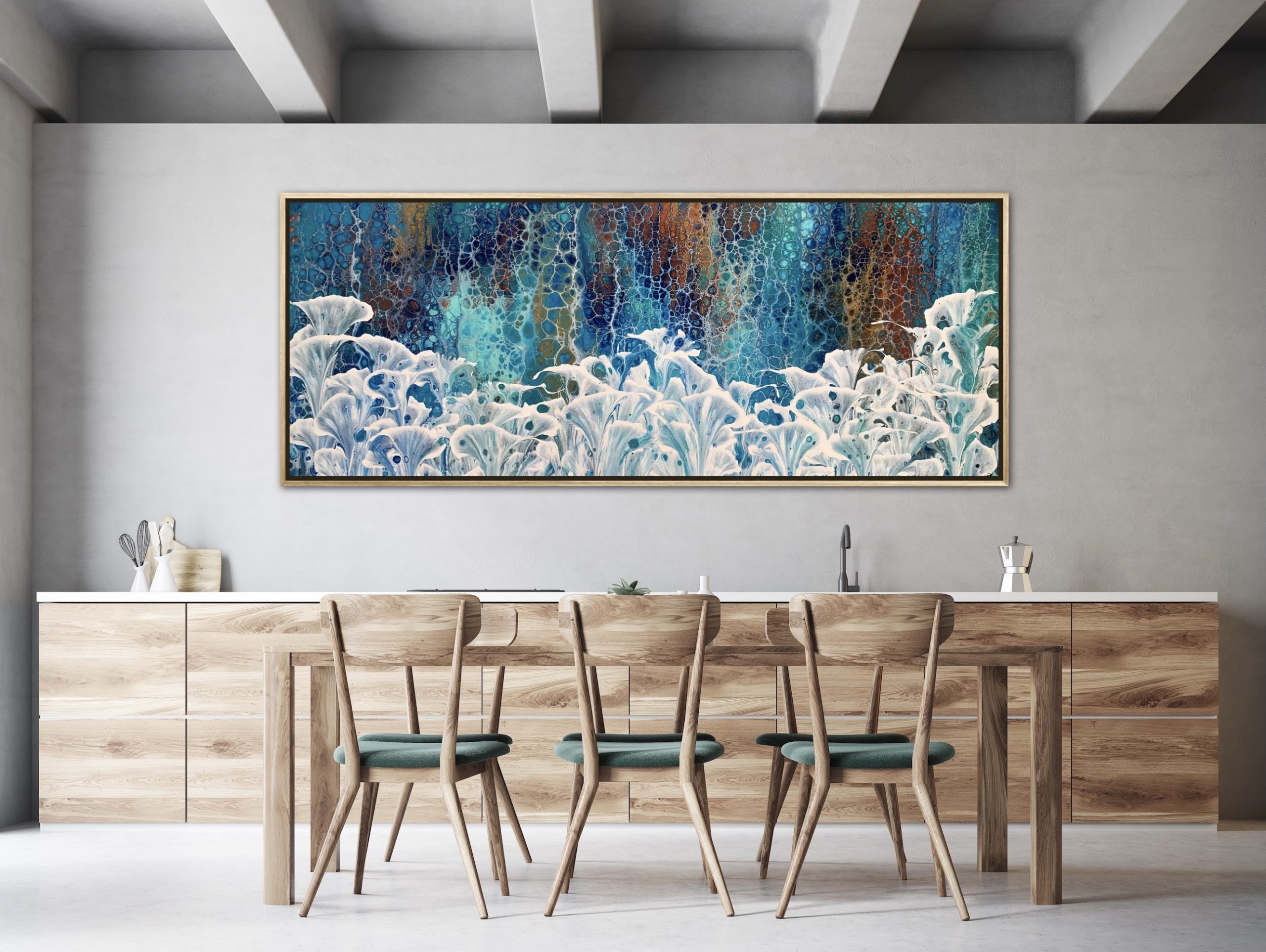‘In situ’ photos have been included to help with visualisation of the artwork in your home. In situ photos provided were created using the ArtStage app and may not be perfectly to scale. This being said, every effort has been made to represent the size of the art accurately but please read the dimensions of the artwork to ensure it fits your space perfectly. Where provided, photos of framed art are for illustrative purposes only.