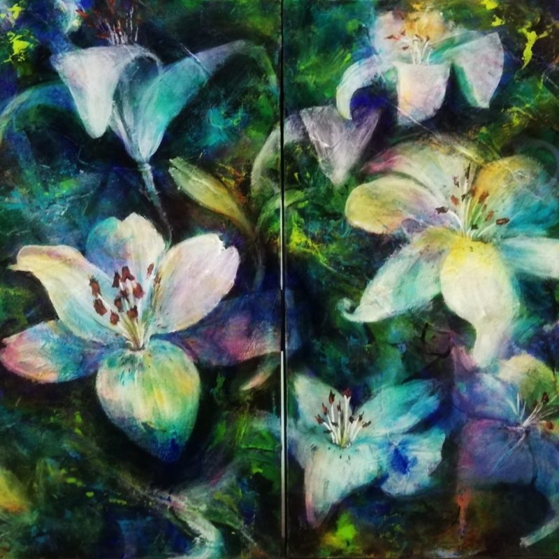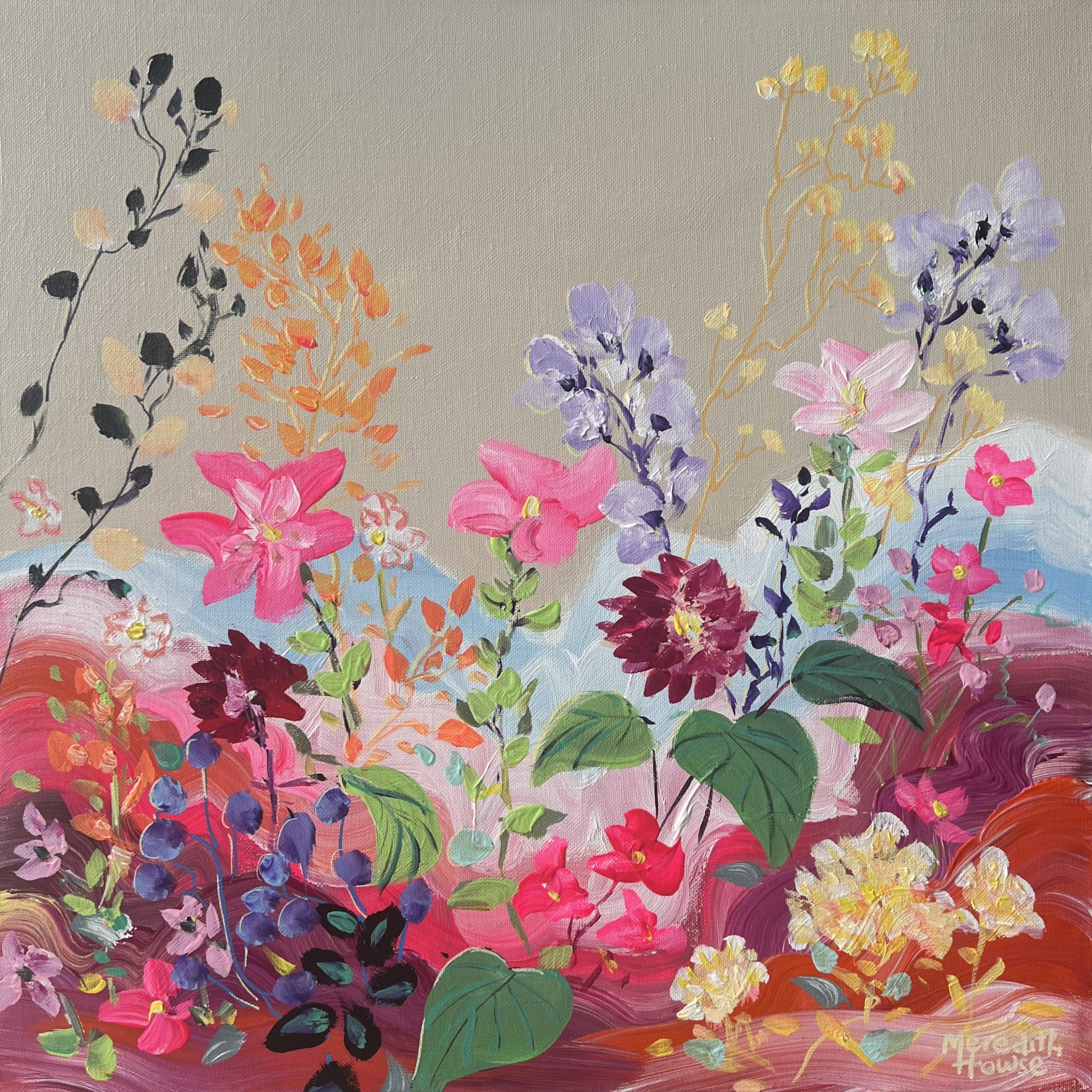 ‘Vibrant Vintage’, by Meredith Howse transports viewers to the natural beauty of a flower garden. The painting showcases an array of blooms.
