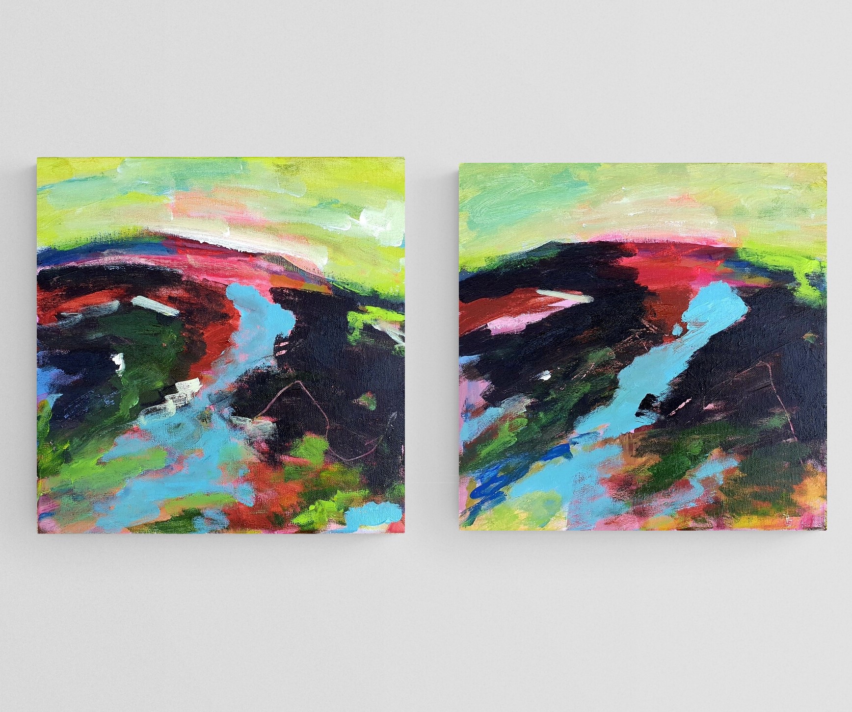 Painting is inspired by the rich and vibrant tones of the Australian landscape. With a process rooted in instinct and intuition, Alpana’s images typically begin from a desire to interpret a specific situation or locality. While layering and mark making techniques are utilised to achieve dimension and form, expressive brushstroke work and highly impactful colours are incorporated to invoke a rushing, rhythmic movement and flow. Pieces are worked and reworked in an effort to capture the experience until, eventually, the paint offers up its own conclusions, which Alpana routinely develops into the work’s ultimate expression.