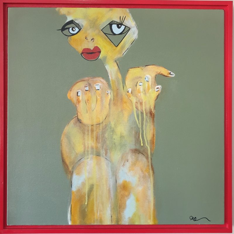The canvas surface was textured with tissue paper and sealed, which gives the acrylic paint a broken surface.