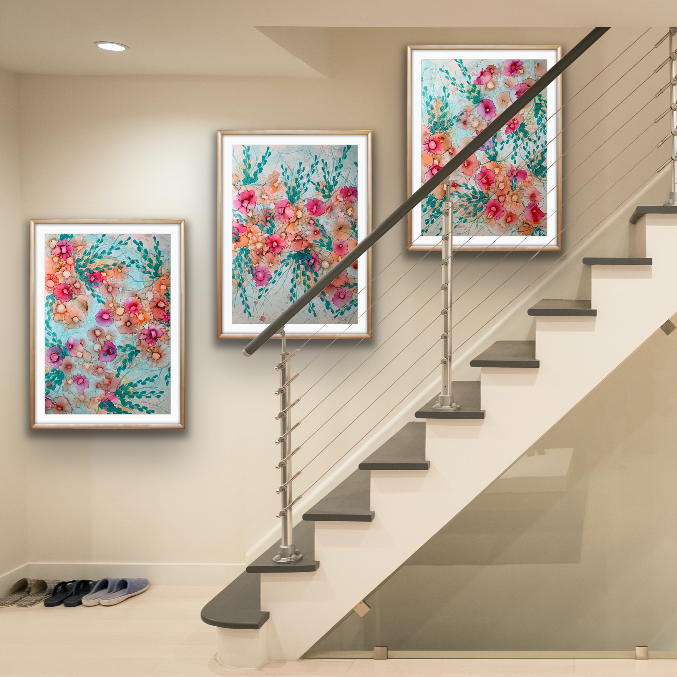Original triptych 65 cm x 91 cm x 3 Alcohol ink on yupo paper sealed with high grade varnish and UV spray.