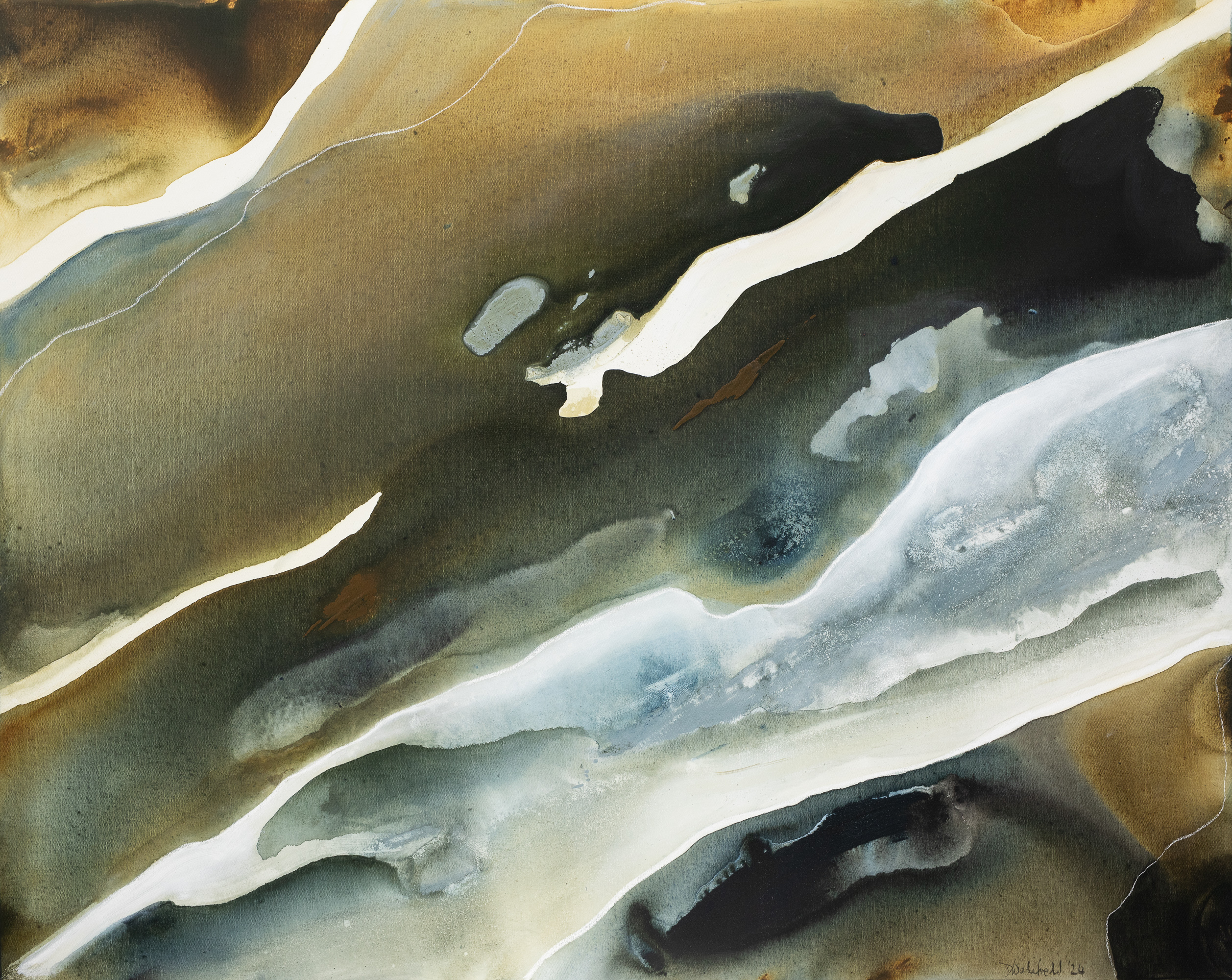 Viridis by Dinah Wakefield is inspired by the light, the colours and the natural beauty of the Noosa region of Australia. “What I love most about Noosa is the interplay of light. From the oceans to the clouds, to the river estuaries and the hinterland, this canvas unfolds before me every day and finds expression in my paintings”.