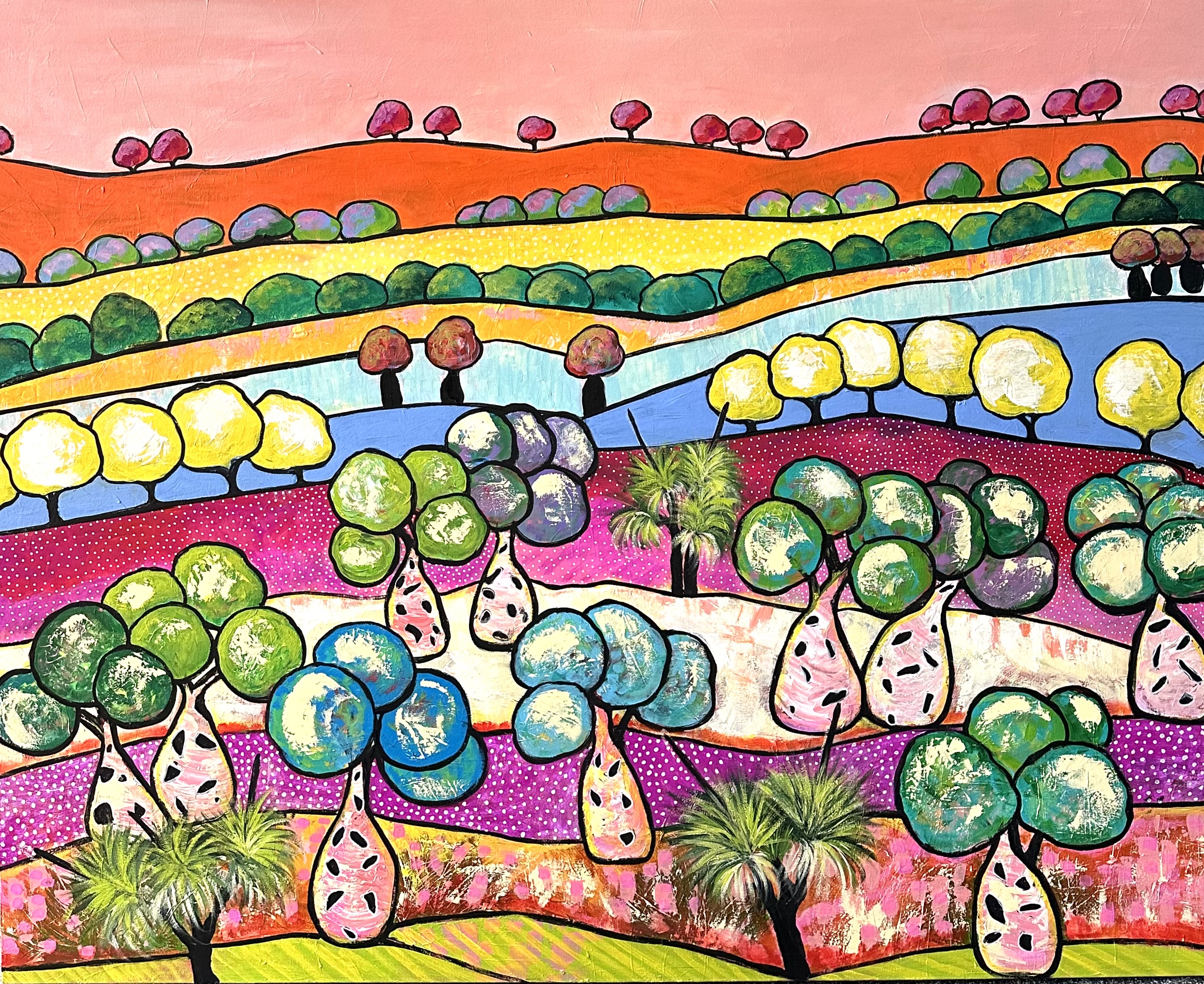 A beautiful, vibrant interpretation of Outback Australia where these hardy bottle trees grow wild and free.