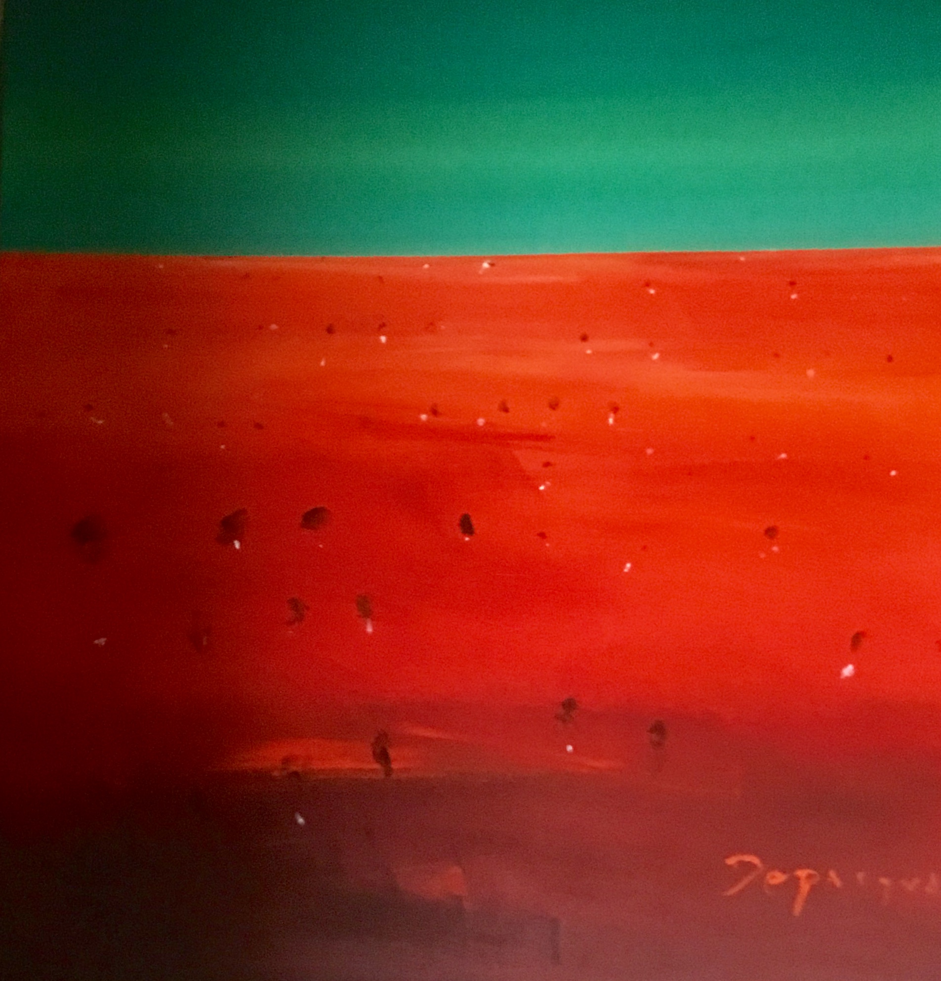 “Vistas I Outback “is an original painting in Acrylic by artist  Faye De Pasquale on top quality stretched canvas  .It  interprets the Australian Outback in a rich intense contemporary manner . The amazing use of colour applied simply ,and the  colour choice strong reds and contrasting turquoise’s of the sky area impacts upon the viewer in a direct and forceful  manner begging for a response  .Would  be  superb on a white or coloured wall . No need to frame as image extends to wide sides canvas (see product images ) .