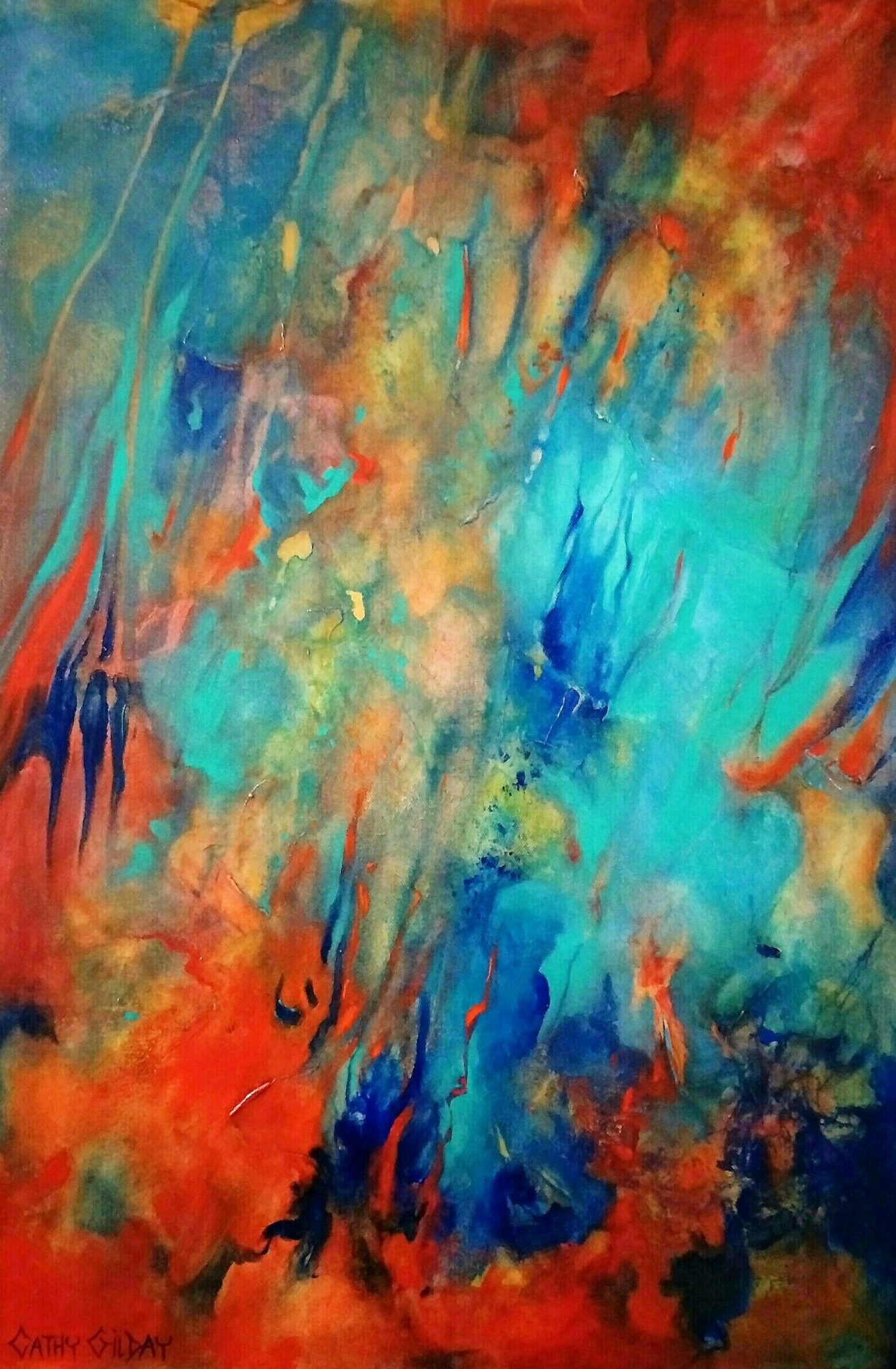 Vivacity by Cathy Gilday – My intension in this bright and colourful abstract was to capture movement and light! The vibrant colours give this piece a wonderful vivacious energy. I have used artist quality paints, the sides of the canvas have been painted. Sealed with several coats of uv protective varnish and ready to hang.
