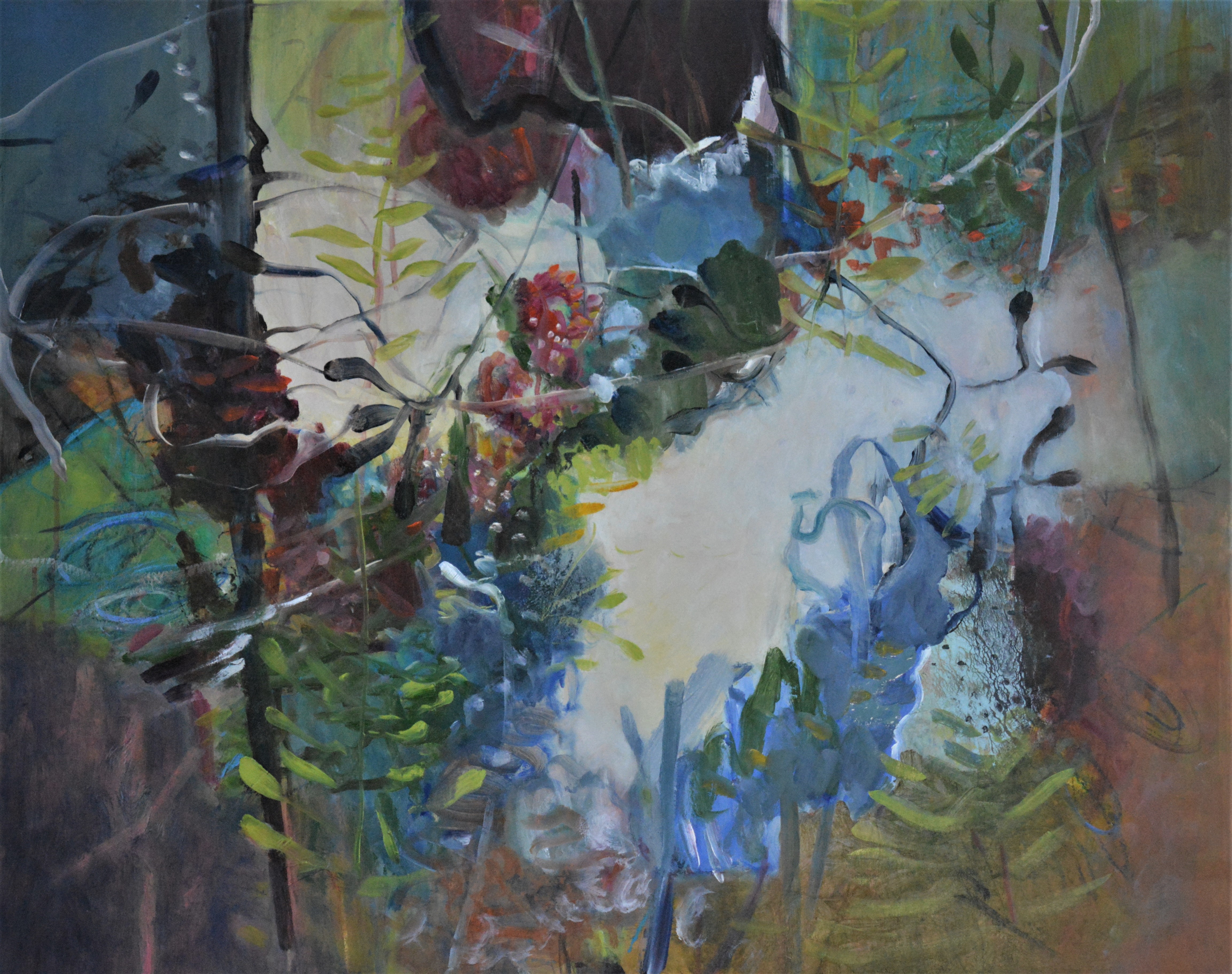 “I love being immersed in nature and draw inspiration from my coastal and bush surroundings especially local and hinterland creeks and streams. I work abstractly to reinterpret nature’s patterns, rhythms and colours”.