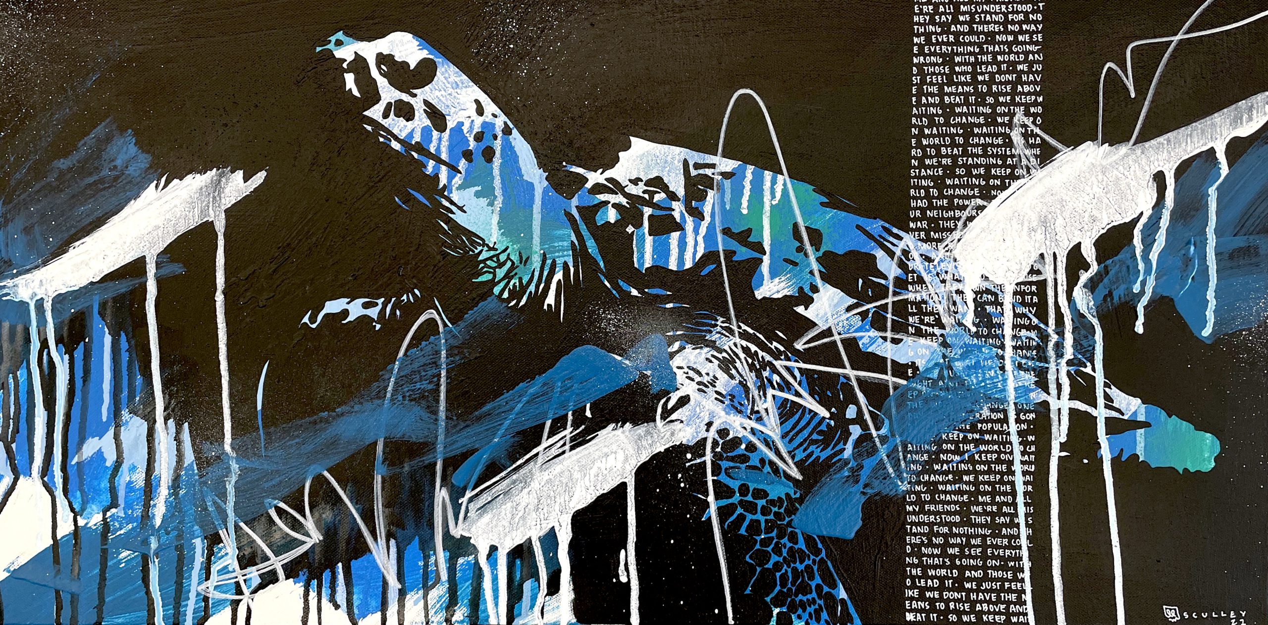 Mixed media – acrylic, spray paint and ink on canvas
