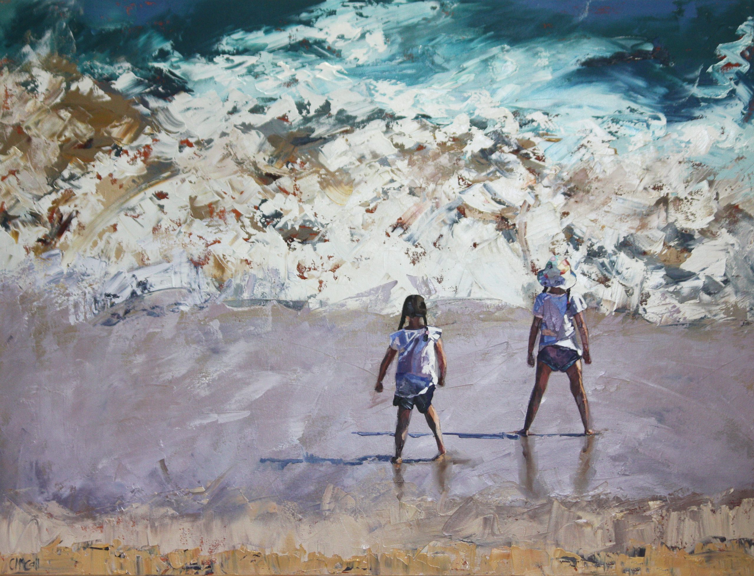 Celebrating endearing memories of the beach, this painting is completed with a palette knife to give texture, bold colour and movement.
