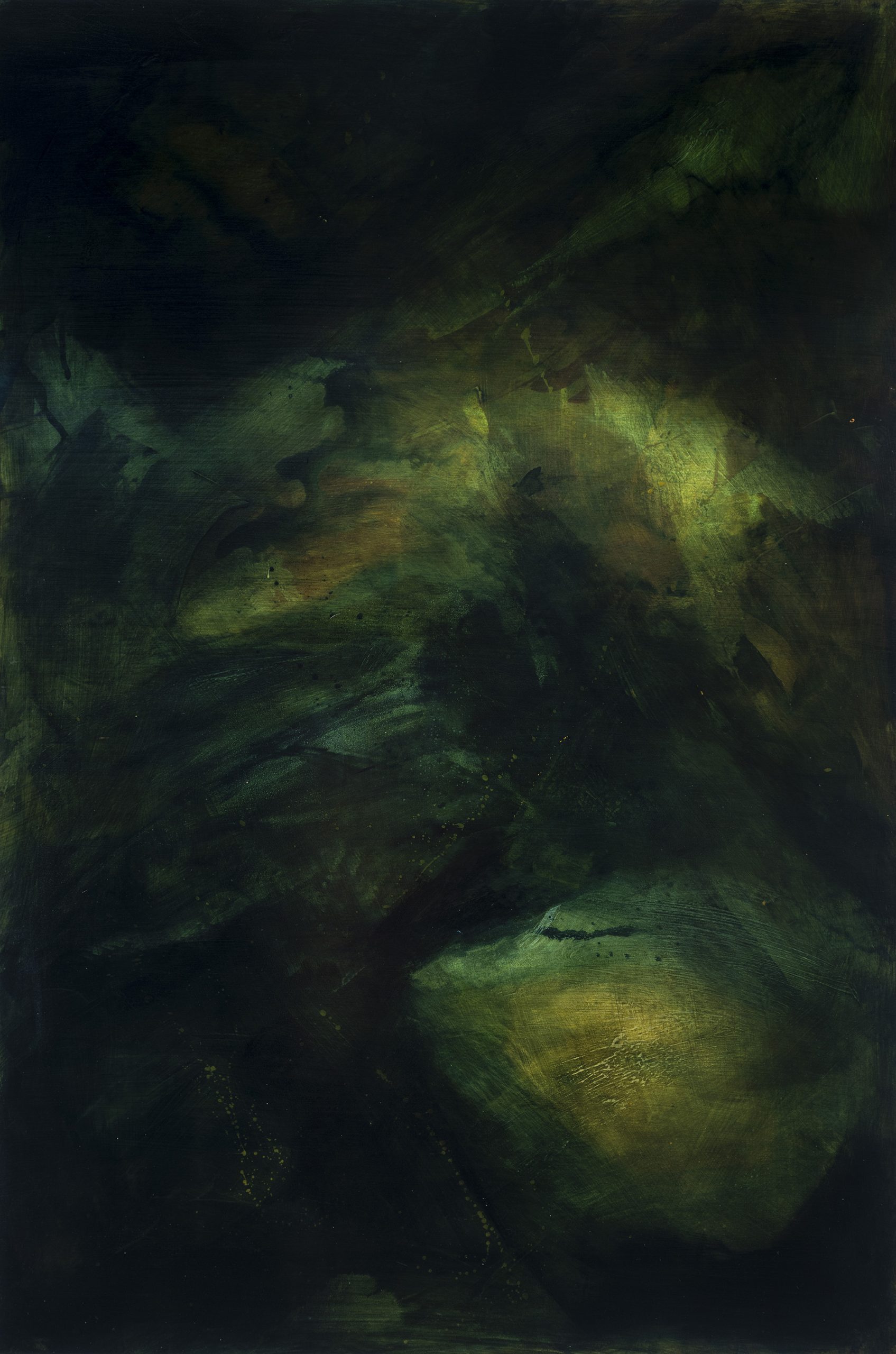 Working with water, acrylic paint, and various mediums on aluminium composite panel (ACP), Kypriadakis engages in a meditative dialogue with materials to create paintings that evoke stillness and invite slow looking. Her process involves an intuitive response to a body of water, embodying site-specific colours and light, bold first layers made with unconventional tools, followed by a meticulous, quietening process of multiple glazes and sanding back, to arrive at a luminous surface that appears as faintly recognizable yet unknowable.