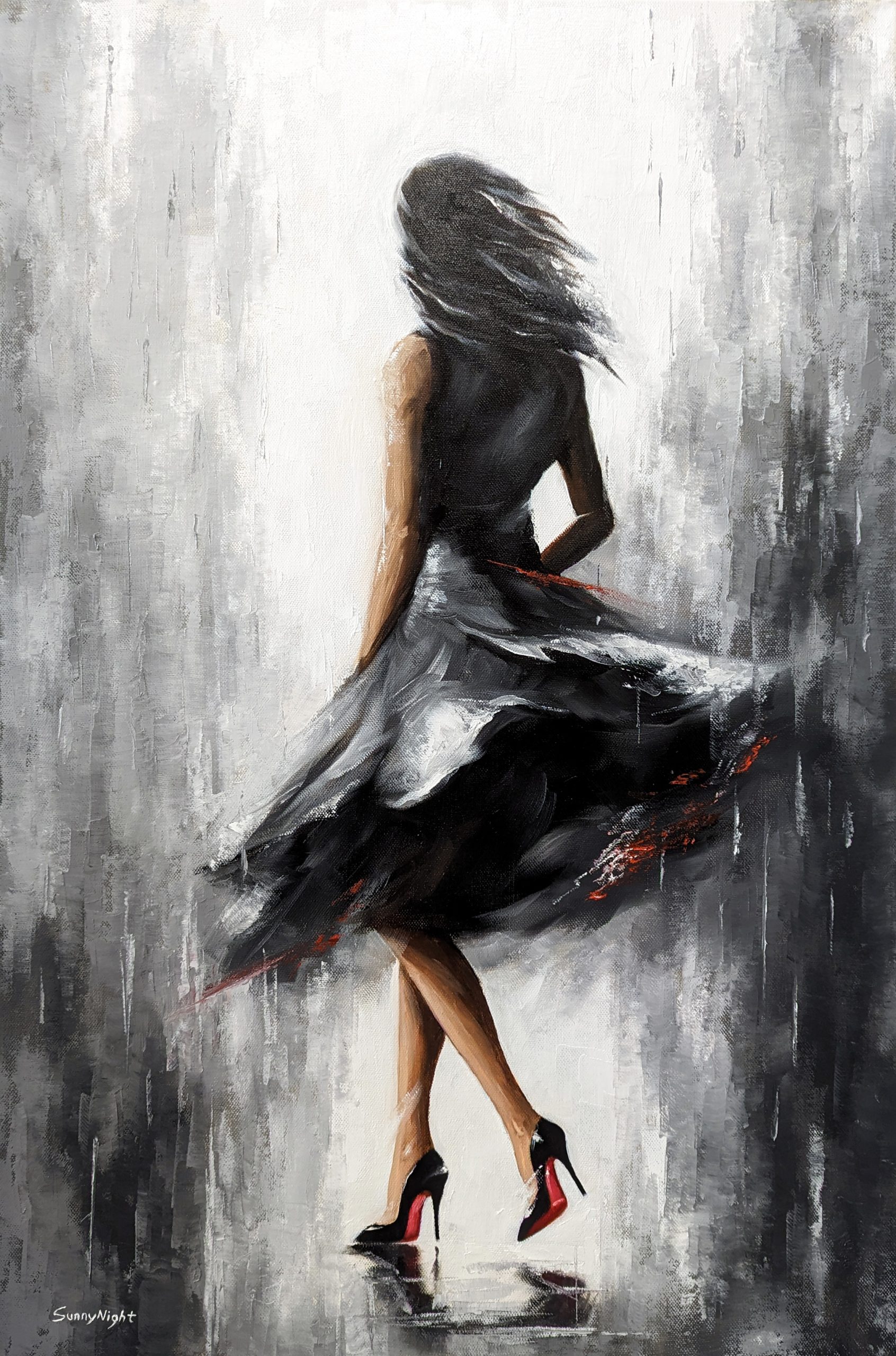 Impasto oil paint a lady city walk with palette knives & brushes.