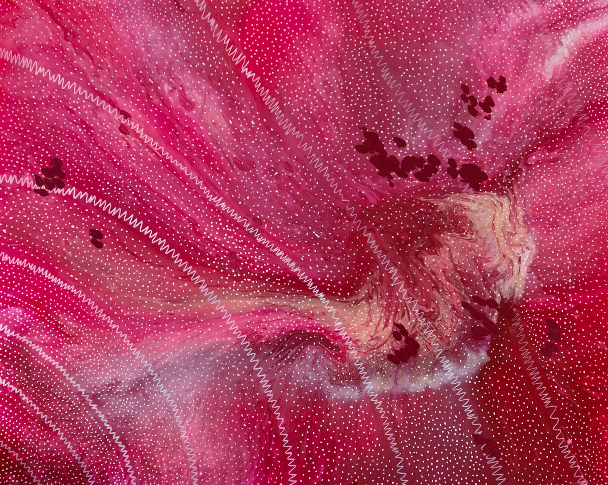 This is an original and unique abstract painting. I was inspired by the documentaries on explorations and the setting up potential colonies on Mars. This paintings depicts the footsteps of those first human travellers on the red planet. The colour scheme was inspired by the red, pink and gold tones generally associated with the NASA photos of Mars. I added white dots and lines to convey that the humans are already putting their stamp on Mars by using the same geographic mapping lines that are used on Earth.