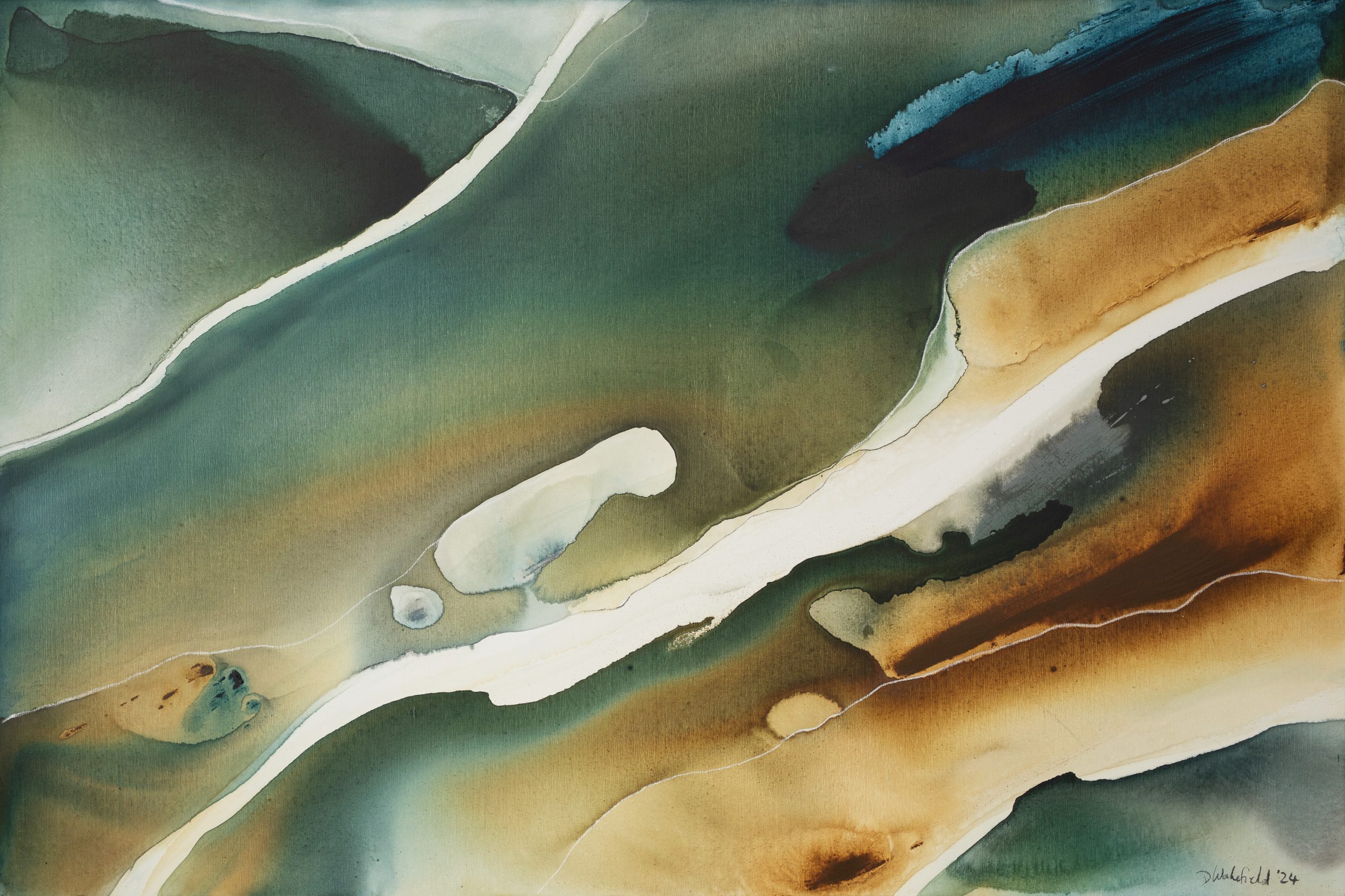 Wallum Country by Dinah Wakefield is inspired by the light, the colours and the natural beauty of the Noosa region of Australia. “What I love most about Noosa is the interplay of light. From the oceans to the clouds, to the river estuaries and the hinterland, this canvas unfolds before me every day and finds expression in my paintings”.