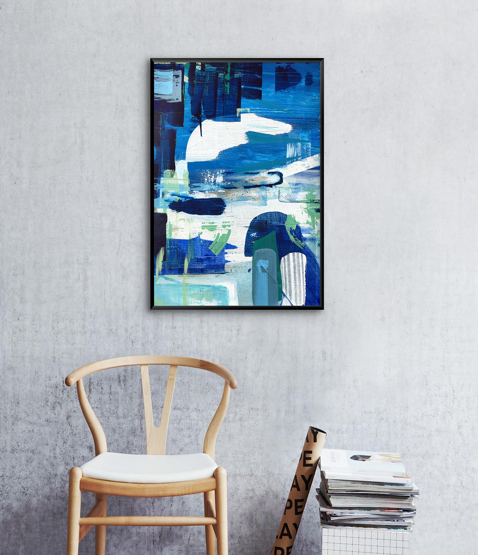 Anchored by a palette of deep ultramarine, vivid lime and aqua, along with sophisticated washes of white, Wandering Eye sits confidently in contemporary spaces where art is chosen with the same intention as furniture, lighting, and materiality.