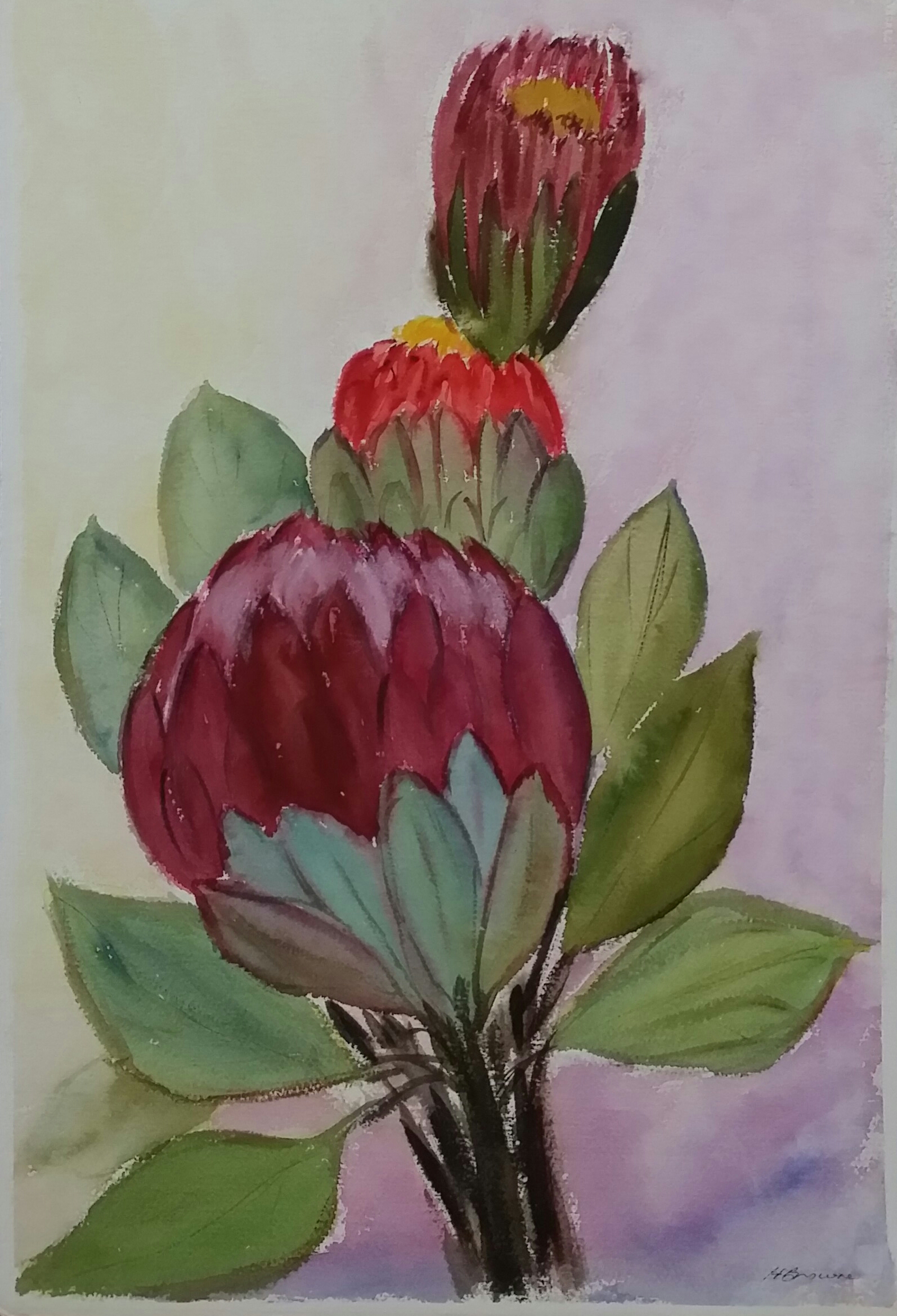 Waratahs by Heather Browne is a watercolour painting on Arches rough 600gsm watercolour paper.