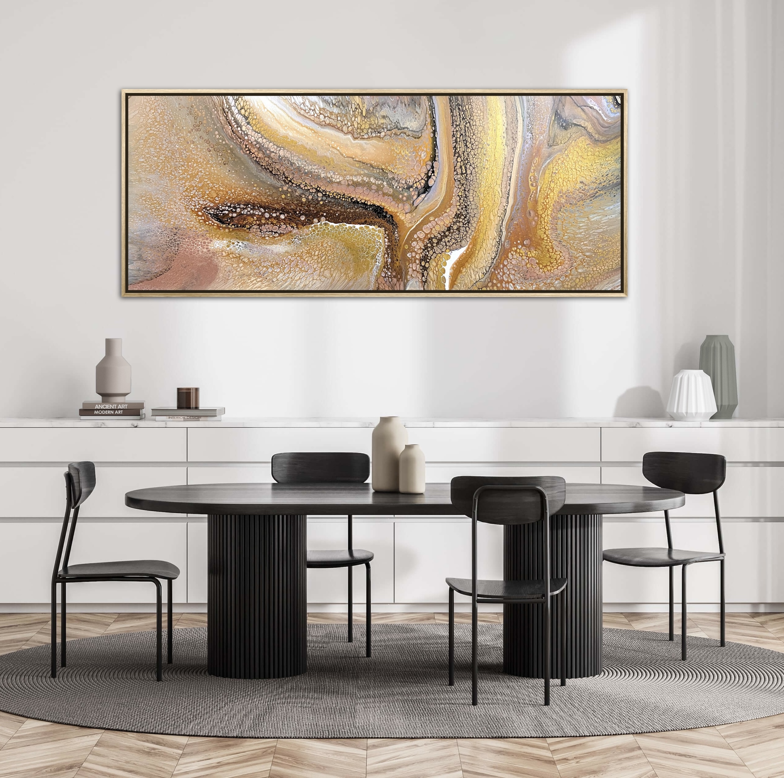 ‘In situ’ photos have been included to help with visualisation of the artwork in your home. In situ photos provided were created using the ArtStage app and may not be perfectly to scale. This being said, every effort has been made to represent the size of the art accurately but please read the dimensions of the artwork to ensure it fits your space perfectly. Where provided, photos of framed art are for illustrative purposes only.