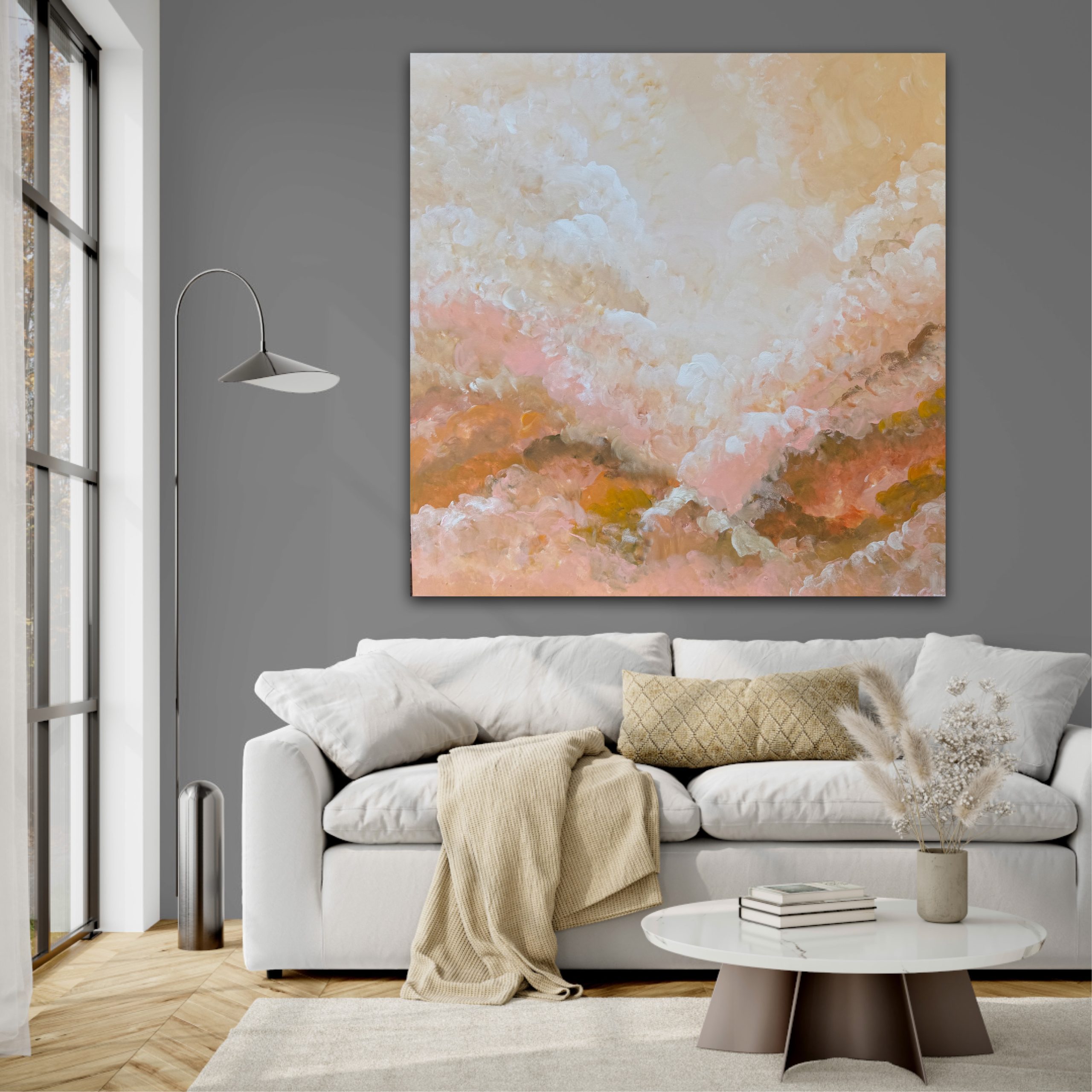 Let warmth and softness fill your space with this calming abstract piece. ‘Warm Haze’ features an elegant blend of soft clay tones, muted white and smoky greens creating a sense of both energy and serenity to any space.