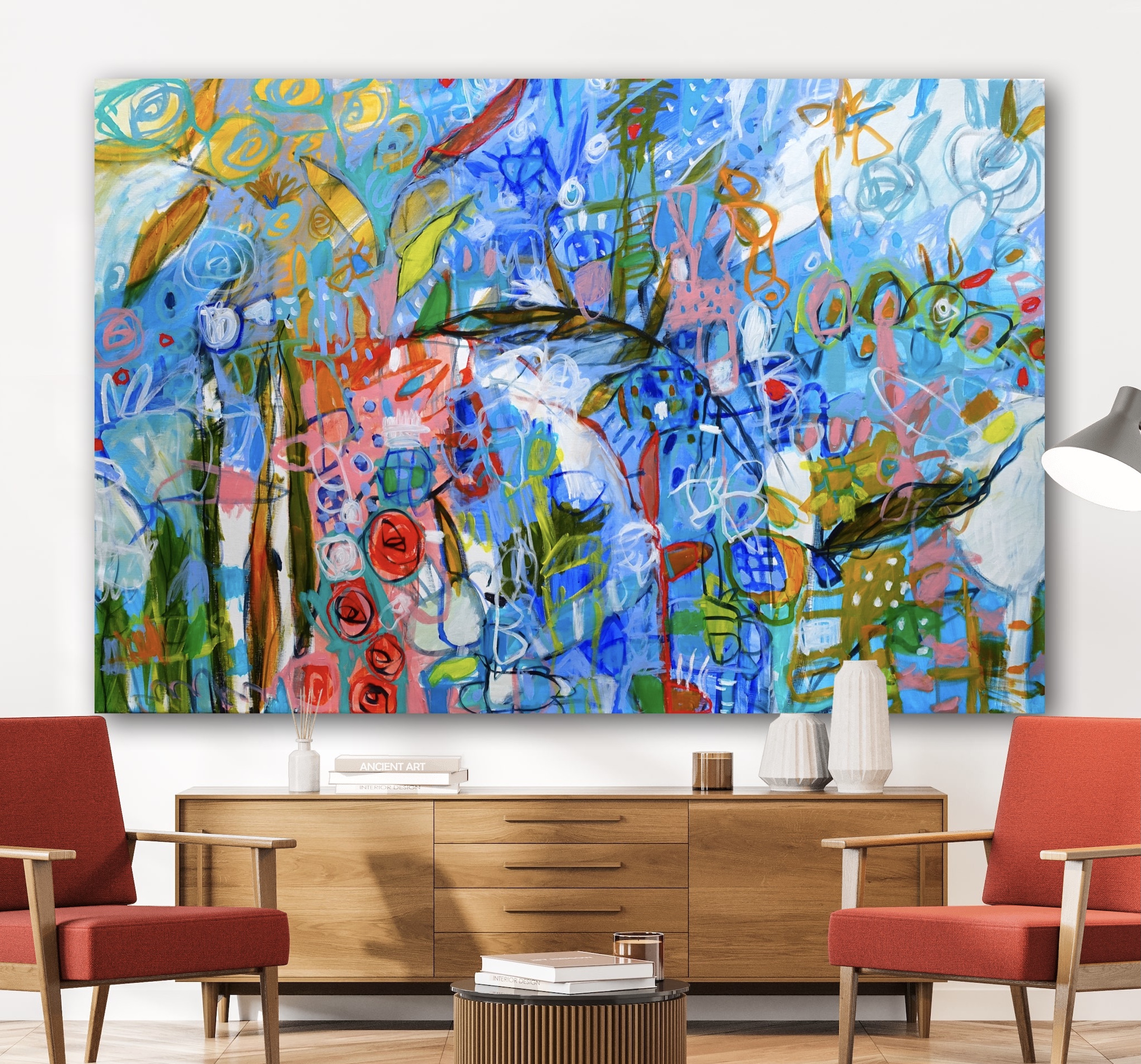 This work is oil and acrylic on 122X182cm on Fine Belgian Linen, signed on the front and sent with an artist cv and certificate of authenticity.