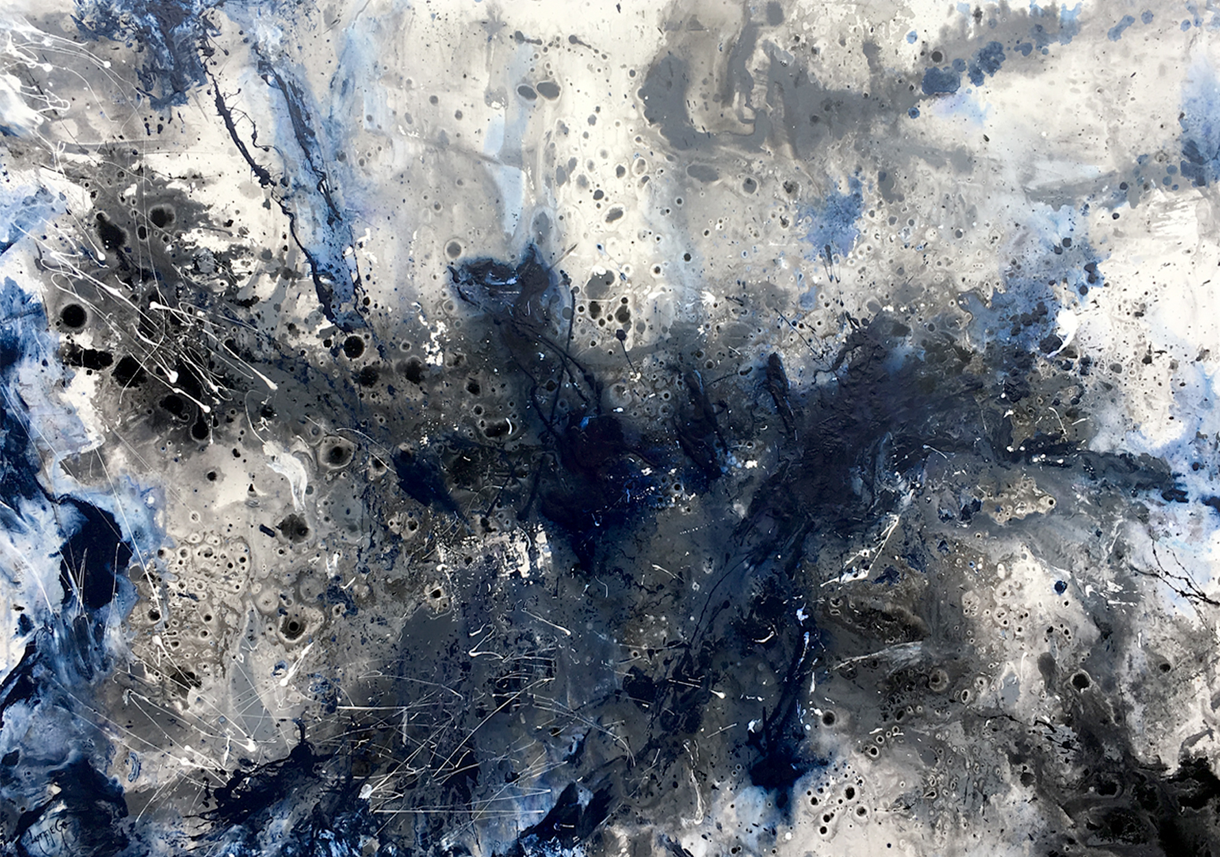 A strong, textured abstract evoking the depths of water. Finished with a high gloss sealant to add to the appearance.