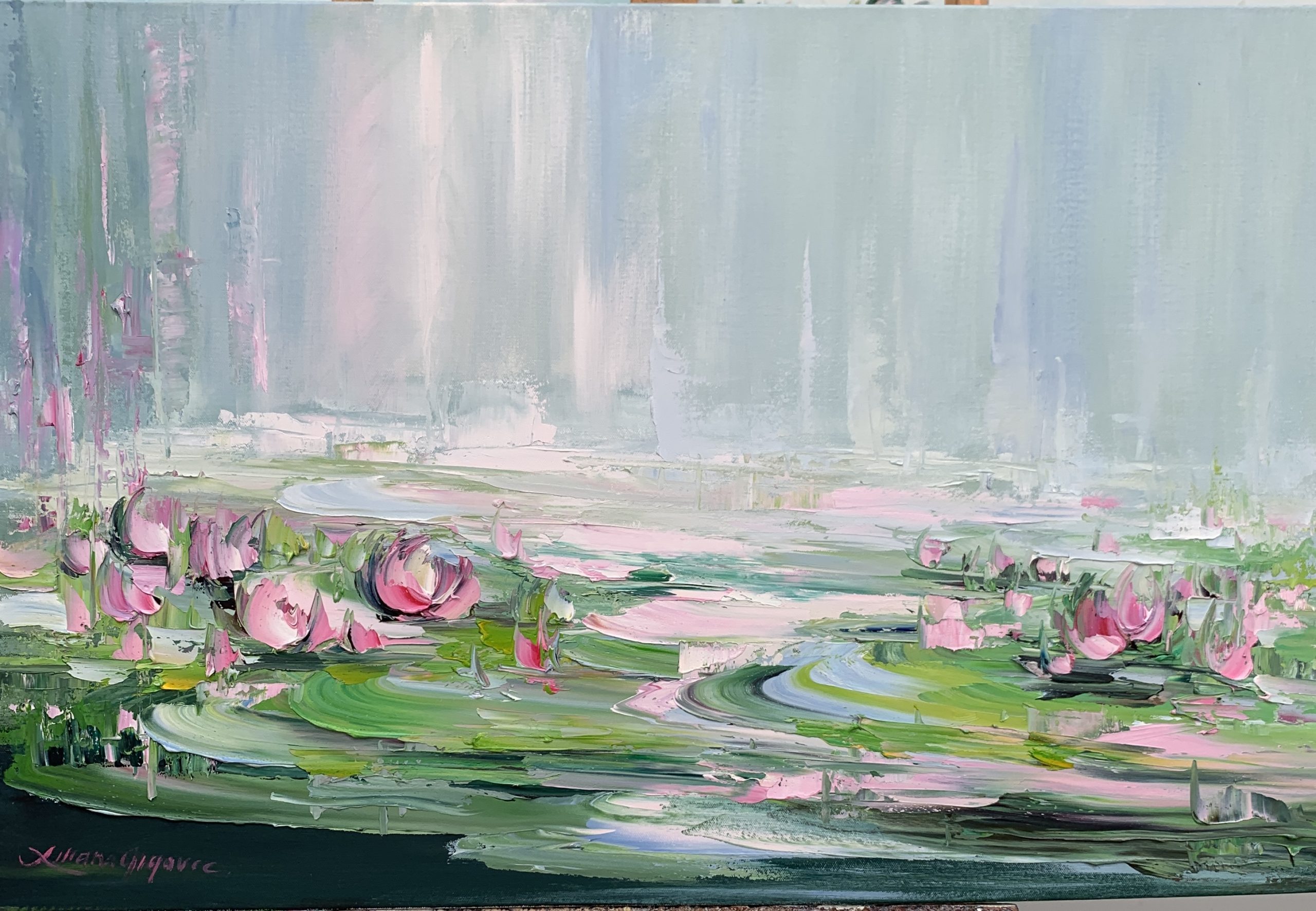 Water lilies No 125 by Liliana Gigovic – Oil on canvas, stretched and ready to hang.